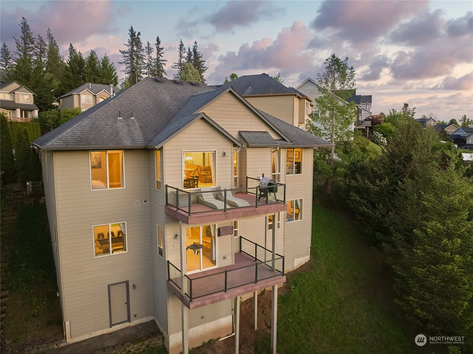MUST SEE VIEW! Make yourself at home in this stunning daylight ranch located in a peaceful and private cul-de-sac, breathtaking views from both balconies. The main level features beautiful Brazilian Cherry hardwood flooring, vaulted ceilings throughout living room, with fully main level living. Ample space for guests on the main floor, while downstairs you’ll find a huge bonus room currently being used as an epic game room (MUST SEE) – ideal for a home office, media room, or additional living space. The 3-car garage provides plenty of room for vehicles and storage. Don’t miss your chance to own this exceptional home that combines luxurious living with stunning views and an unbeatable location.