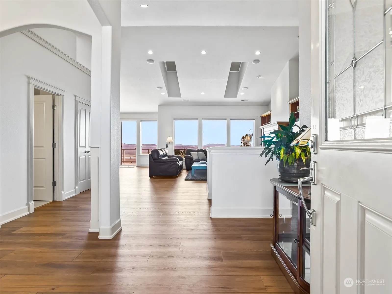 Welcome to this nearly 4000 square foot luxury daylight ranch with breathtaking panoramic views of the Columbia River, Mt Hood, and Portland city lights. Bonus – Camas School District! This home boasts natural light, an open floor plan, high-end finishes, built-ins, and includes 4 bedrooms, plus an office. Primary on the main has a 5-piece ensuite and walk-in closet. Main floor also includes an office, additional bedroom and full bath. Downstairs has flexible space including a kitchenette, family room, 2 bedrooms and a full bath, as well as access to the fully fenced and private backyard. Grab a beverage of choice, lounge on the deck and take in the unparalleled views!
