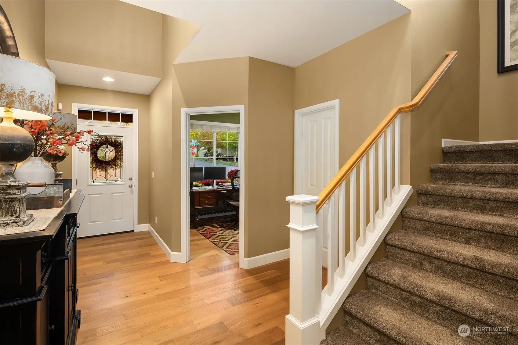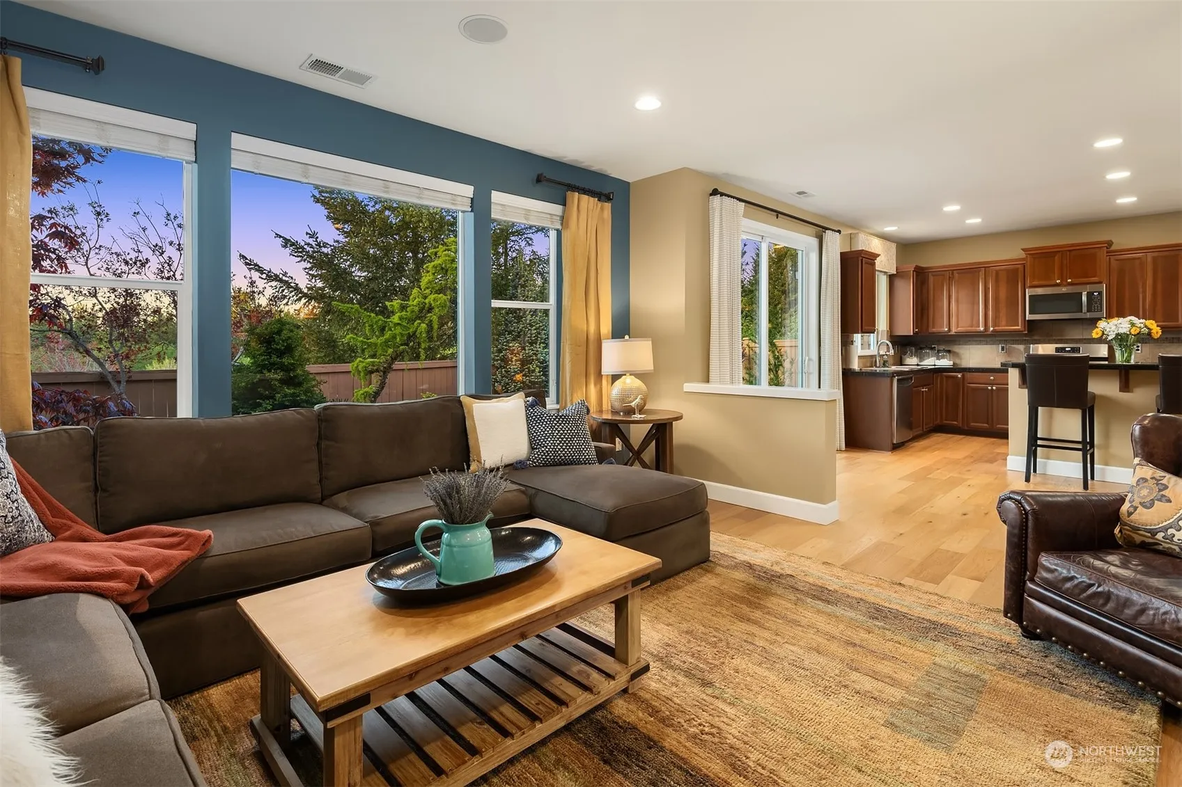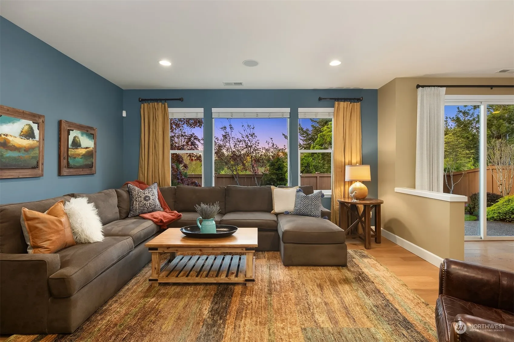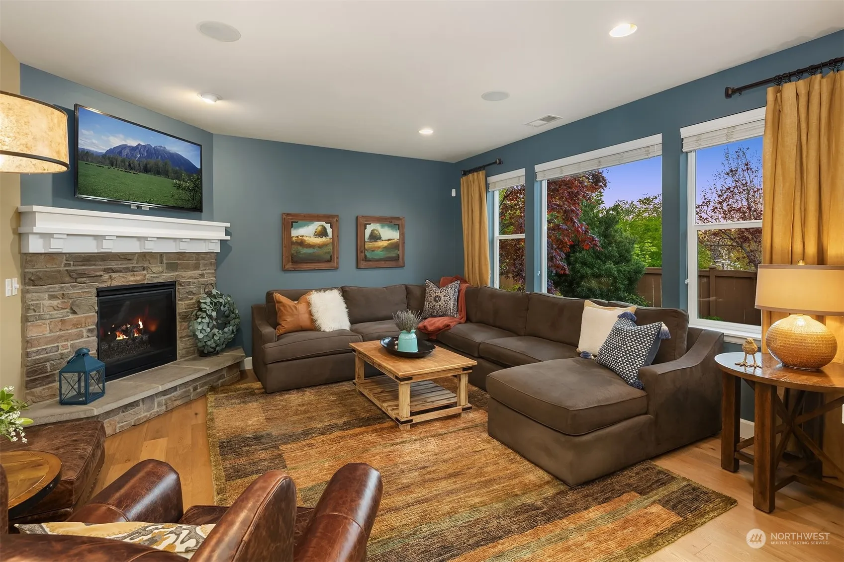 Is this love at first sight? A former model home with classic wrap around front porch. Perched on a corner lot in one the most desirable neighborhoods on Snoqualmie Ridge. This floor plan has it all- a main floor den/office, unified great room with gourmet kitchen & formal dining space. Upstairs there are 4 bedrooms, including a private owner’s suite & a giant bonus room. Upgrades include newer wide plank white oak flooring, a masonry stone fireplace surround , granite countertops, AC, alarm system, wired for generator and built in surround sound. The private and fully fenced yard backs to Jacobia park. Lush & mature landscaping manicured to perfection complete with irrigation. Award winning Snoqualmie Valley Schools. Welcome home!