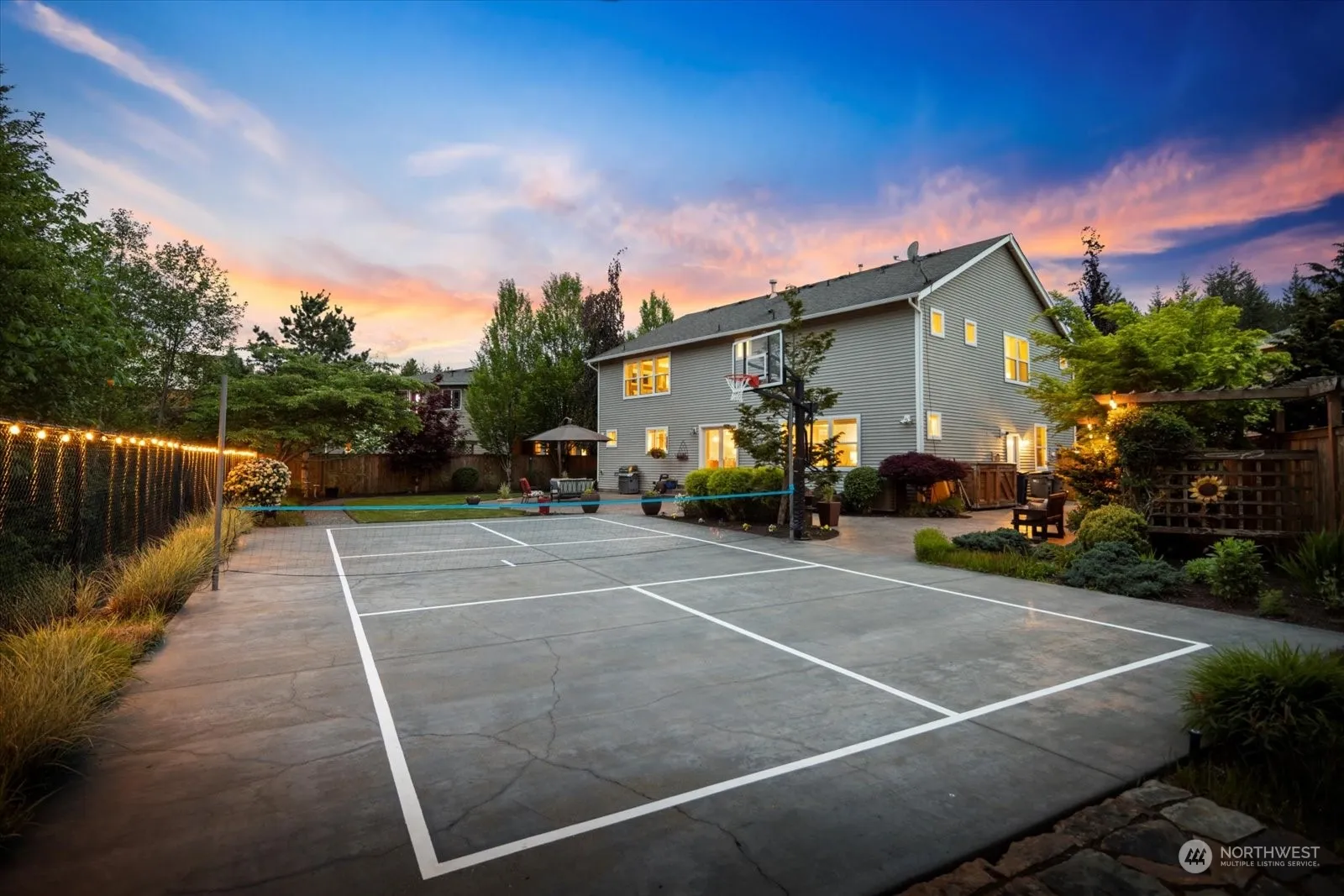 Who wants to play pickleball in your backyard oasis, on your very own sport court?! You will be the envy of all your friends and neighbors! This is truly a rare offering on so many levels. An exceptional .25 acre greenbelt lot, on a cul de sac with 150K in backyard upgrades. only 7 of this plan built. 100K in interior builder upgrades in 2008. 5 bedrooms plus bonus rooms on each level. Large primary bedroom with bonus room perfect for nursery/workout room/office with new floors. Remodeled large primary bath. Huge walk in closet. Kitchen features new quartz counters & backsplash, newer upgraded appliances & large walk in pantry. AC, generator transfer switch + generator & 3 car garage. Close to parks and Timber Ridge elem. Pre-inspected.