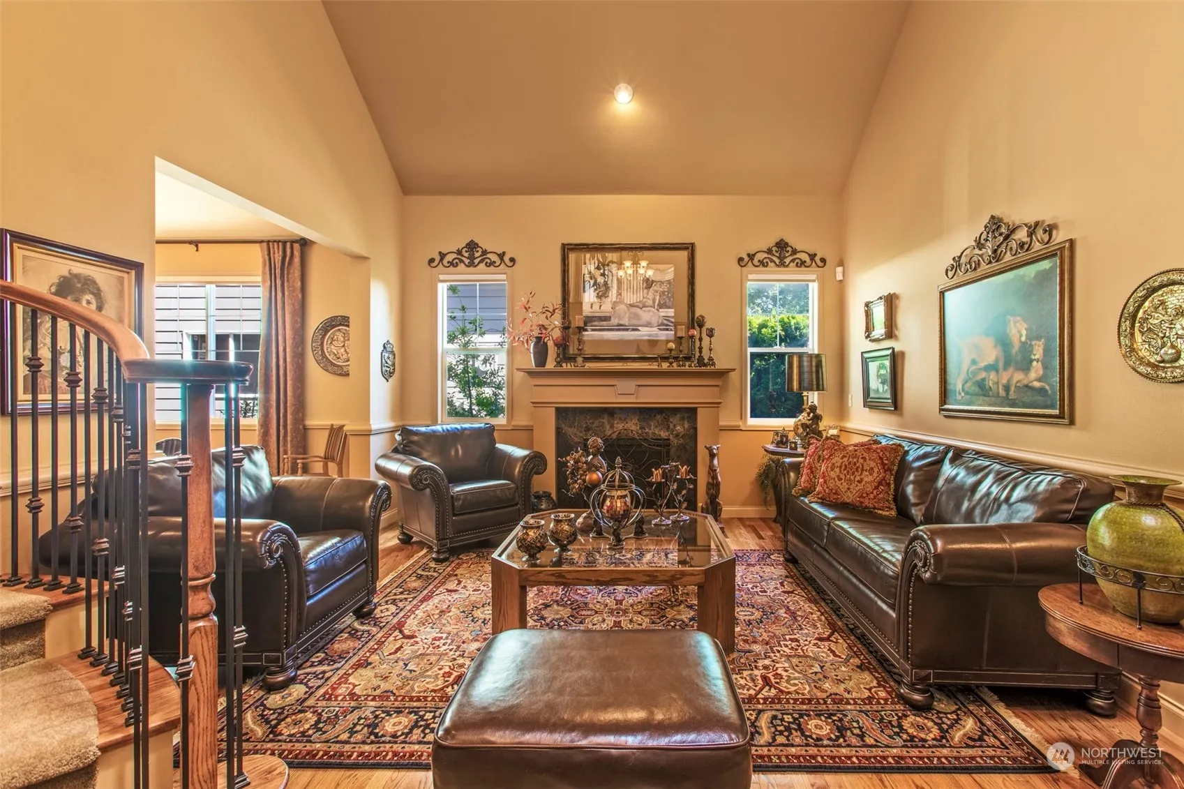 Luxury living in this 4 bdrm, 3.5 bth home located in the Snoqualmie Ridge community. Nestled off the 11th hole of the golf course, this property offers picturesque views & privacy above the tee boxes. Step inside to a vaulted entry & warm Hardwd floors extending throughout the main level. Main floor den. The home features a chef’s dream kitchen, complete w/ an oversized granite island, SS appli, dble ovens & butler pantry. Entering is a breeze w/ the seamless flow into the open living & dining areas. The main floor boasts an en-suite guest rm, perfect for visitors or multi-generational living. Upstairs, enjoy the luxurious primary suite, additional spacious bdrms & large bonus rm. 3 car garage provides ample parking & storage.