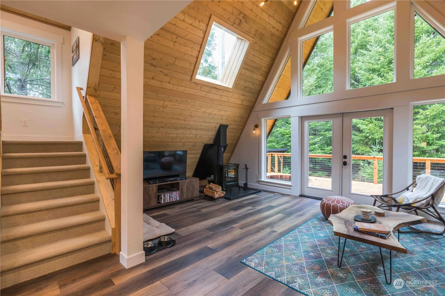 Stunning fully furnished custom built A-frame on .66 acres in beautiful Packwood. Heartwood Cabin is an exclusive turn-key Airbnb property in the Trails End community with all you need to step right into a highly successful investment property surrounded by mountains and outdoor recreation. Stainless kitchen appliances with custom cabinets and white quartz countertops. French doors on the main level open to the back deck with a built-in cedar hot tub. Open loft design with sleeping quarters, half bath, and covered balcony up top. 30 mins to both White Pass Ski Area and Mt. Rainier National Park. Just over 100 yds to private community river access right along the Cowlitz and 10 mins from downtown Packwood. This is truly a rare find!