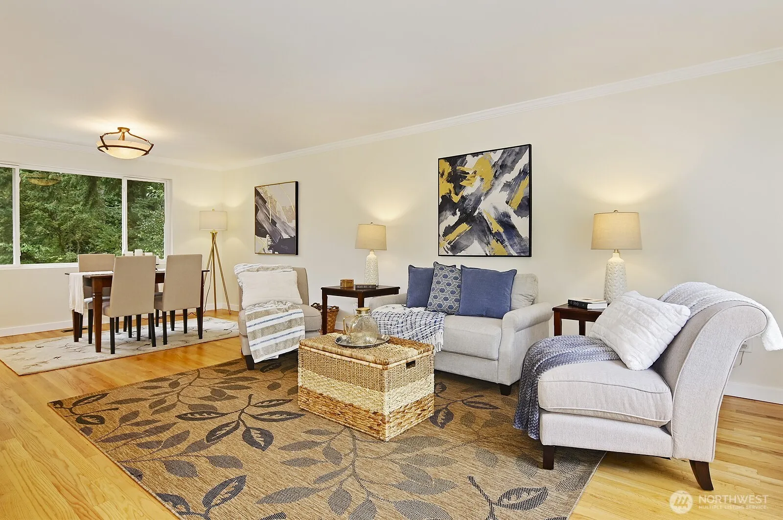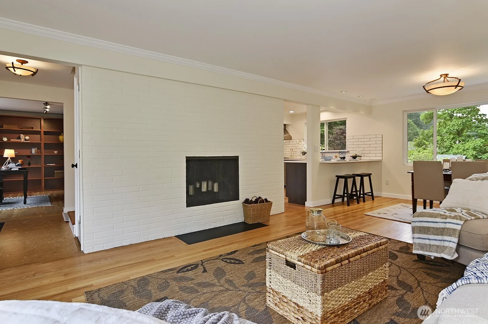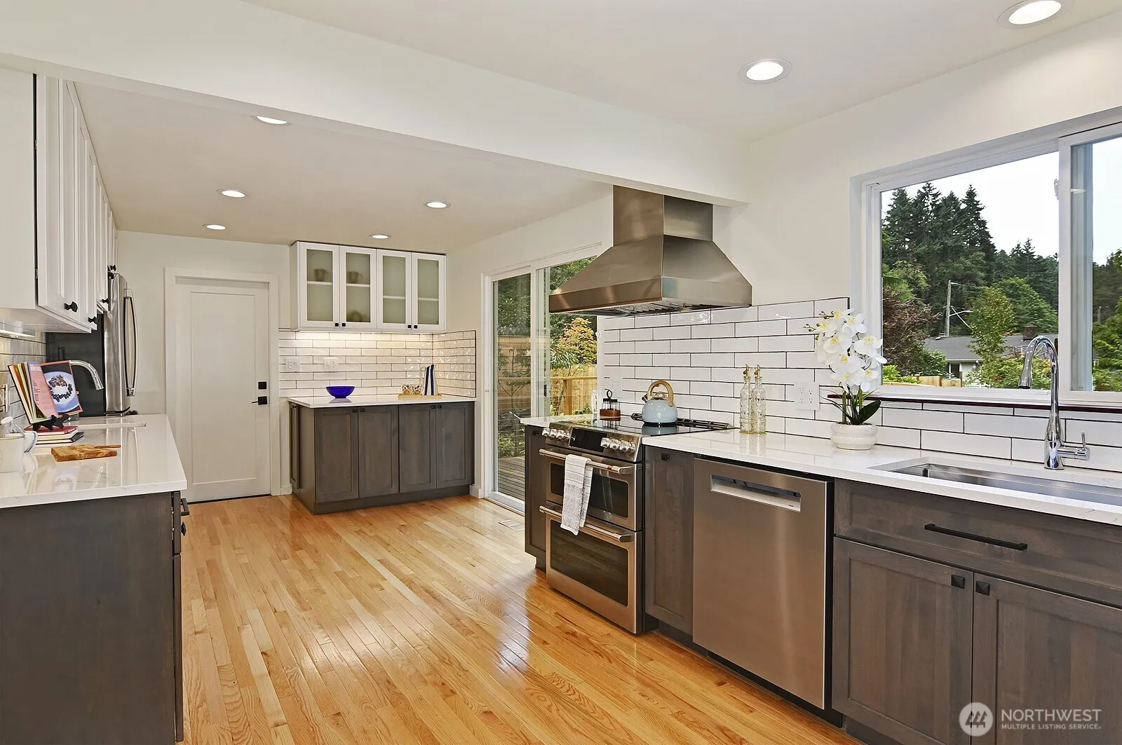 Beautifully maintained Mid-Century home on a large, private lot in Shoreline. Updated lower-level apartment with separate entrance—ideal for guests, rental income, or multi-gen living. Recently replaced roof and stunning remodeled kitchen with Silestone counters opens to an entertainment-sized deck. Elegant living and dining rooms with hardwood floors. The fully fenced backyard features a patio, fire pit, and garden space—perfect for outdoor enjoyment. A soundproofed studio at the rear offers endless creative potential. Quietly tucked away, yet close to parks, schools, shopping, and transit. A serene urban oasis with space, style, and flexibility.