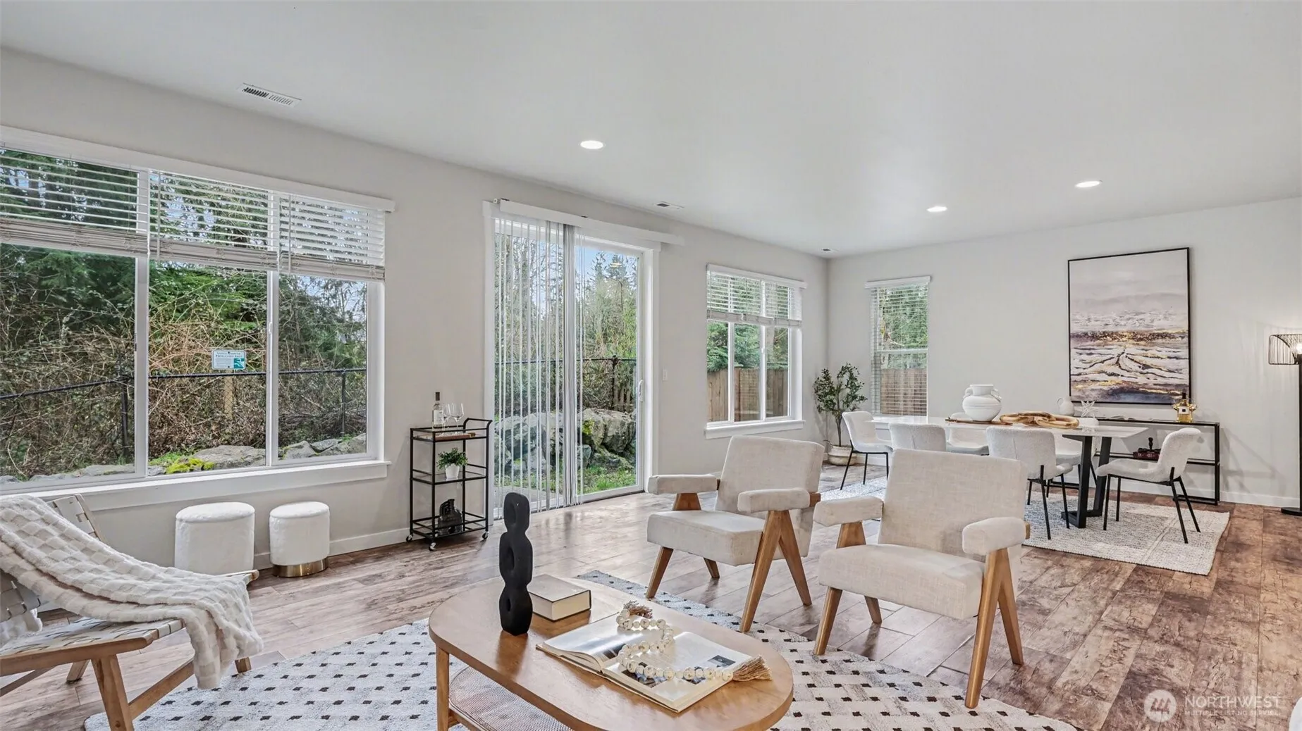 This sprawling 2020 built home in the premier Timbers Community of Lake Stevens is designed for modern comfort. Chef’s kitchen serves as a hub for the main level, expansive island w/ seating, gleaming countertops & ample storage. The open floorplan lives large with vaulted ceilings & an abundance of natural light. Gas fireplace provide cozy ambience and its mantle anchors the room as a great focal point. Easy entertainment flow out the slider to fully-fenced yard which backs to community greenbelt. Bedroom on main & adjacent bath allow for convenient multi-generational or office set-up. Upstairs, private primary w/ en-suite & 2 walk-ins, ample closets for storage & dedicated laundry room complete w/ folding space. Additional 3 bedrooms are generously-sized & large bonus room for living/media/office complete the upper floor. Located near shopping, community parks & part of the coveted Lake Stevens school district.