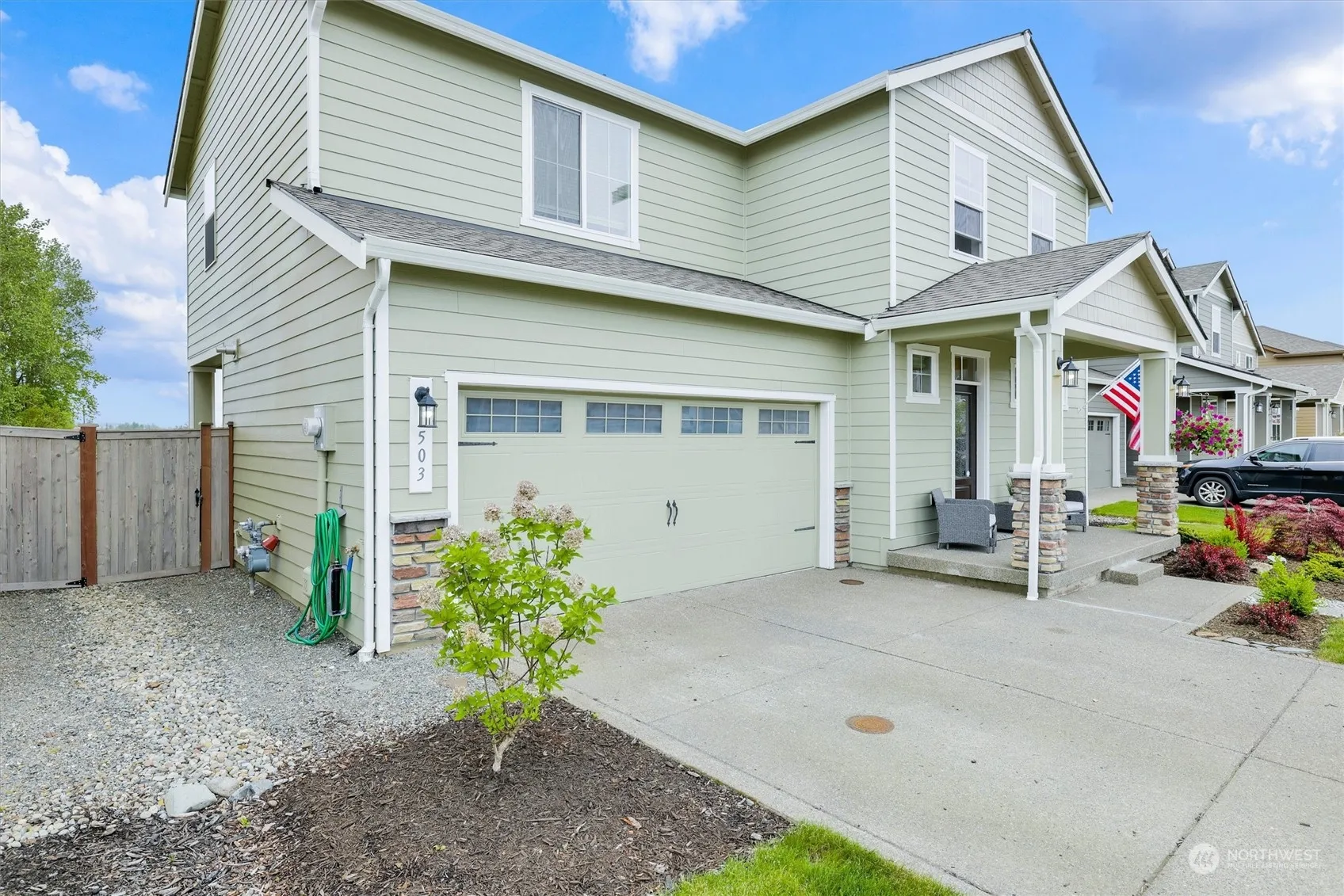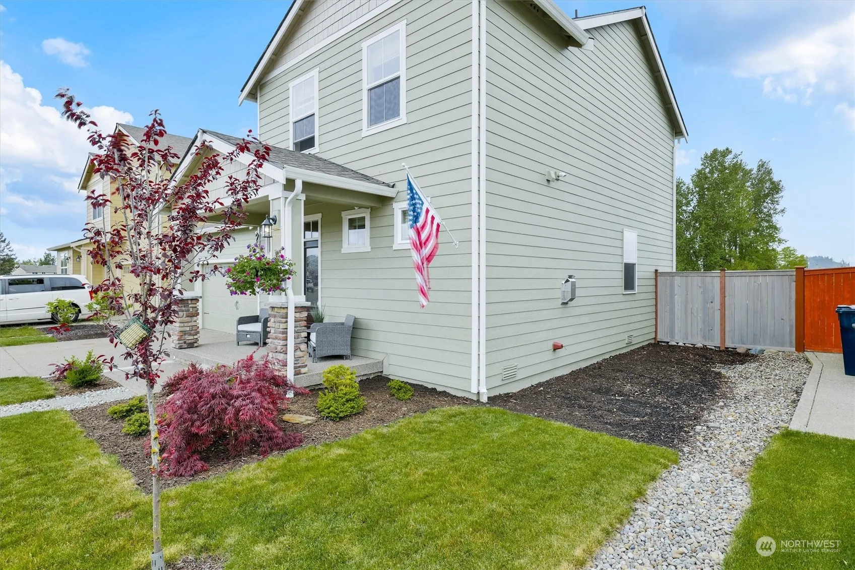 Welcome home to Enumclaw and this Charming Two-story “Fox Model” 3 Bedroom, 2.5 Bathroom home located just down the road from the heart of Enumclaw and Mt. Peak. Loaded with upgrades including stainless steel kitchen appliances, quartz countertops, 42” cabinets and plank flooring. Large great room with fireplace. Fully fenced backyard with an extended covered patio. Owner’s suite complete w/ huge walk-in closet, soaker tub, step-in shower and spacious vanity. Bonus room/loft area makes perfect playroom or office. Mt Rainier views! Hike to Mt. Peak from your home! Suntop Farm Community Park complete with park benches, athletic court and playgrounds!