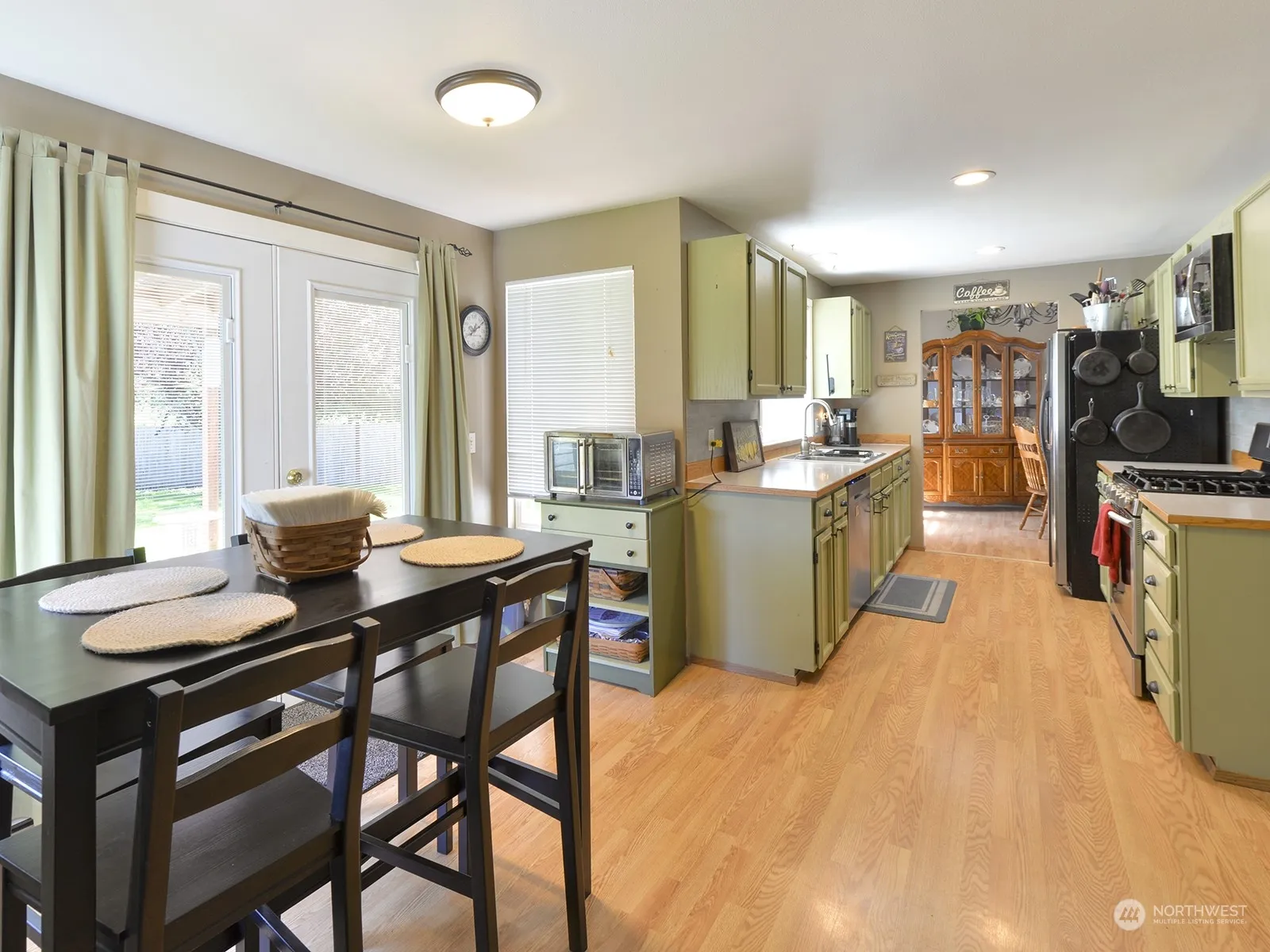 Welcome to the 4 bedroom/2.5 Bath 2-story home. Located in Pinnacle Estates with mature landscaping and backyard privacy! New Furnace and A/C installed in 2023 and roof installed 2018. Main floor has family room off kitchen with gas fireplace. Living room and large dining room. 4th bedroom is on main floor and perfect for home office/den. Upstairs primary bedroom has nice 5-piece bath with walk in closet. Large fenced backyard with covered deck and large storage shed with lots of privacy! 2nd bay garage is finished off useable space but can be converted back to parking garage. Located close to fairgrounds, 5 minutes to Pinnacle Peak Park/Trail hiking and all shopping including historic downtown Enumclaw retail.