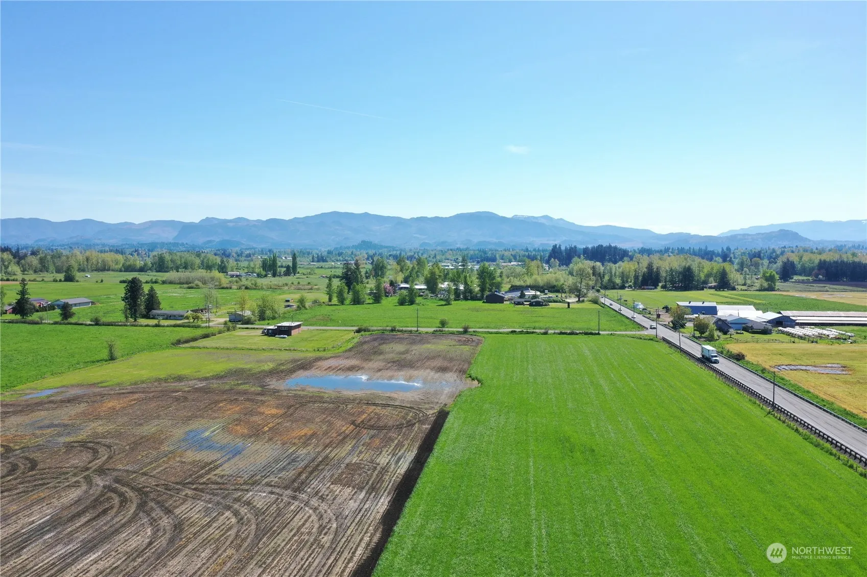 Enumclaw – 17.91 ACRES: 8 level parcels with phenomenal Mt Rainier view. Currently used as farmland, but perfect for 1 custom home build. Minutes from Enumclaw & Buckley while centrally located between Auburn, Black Diamond, Bonney Lake, Covington, & Maple Valley provides for all your shopping, dining, and entertainment needs. Easy access to Hwy 164, 169, & 410. Property is 780,157 sq ft and level. Zoned AG-35. Conservation Easement allows for one home, ADU, and barn with some limitations. Water, power in street. Well needed for AG irrigation. Septic needed for sewer. No gas. Buy and build, hold for future investment/development, or lease to local farming community. No additional studies complete. Buyer to confirm feasibility for building.