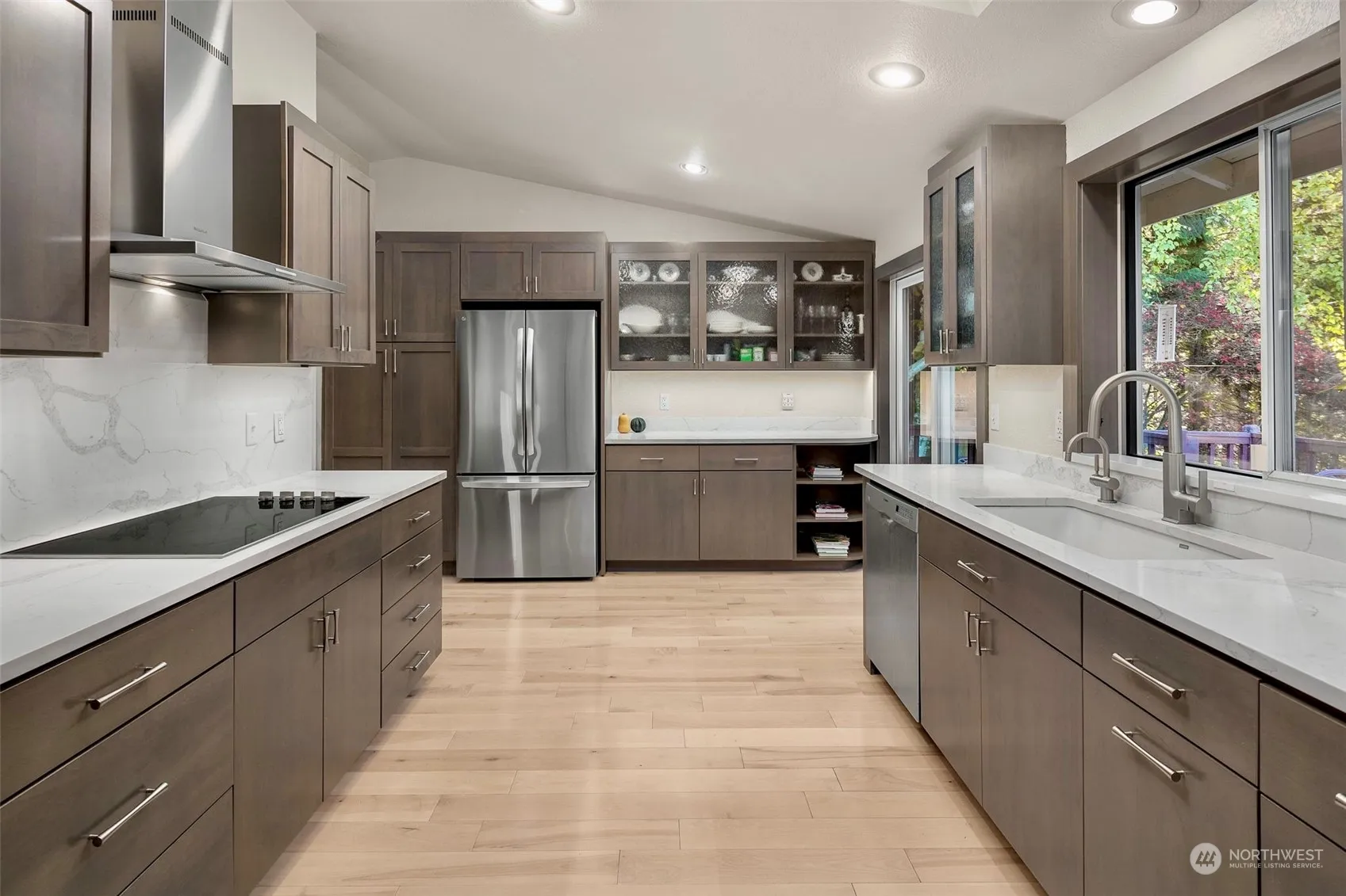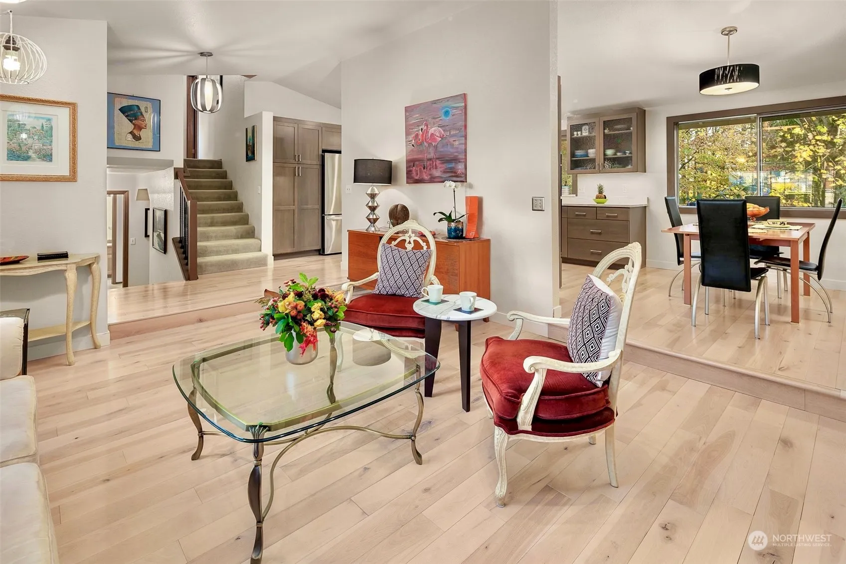 The home is situated above a flowing creek, home to many birds’ and wildlife. It is a native growth protection area. Natural air breeze flows through the home with the help of the tree canopy that allows just the right amount of light in! Listen to the water gently make its way down the stream while admiring the 4 tier deck perched alone the hillside. Fall in love with one of Mukilteo’s Harbour Pointe neighborhoods! This captivating residence is a fabulous opportunity to live in Harbour Highlands subdivision close to Golf, tennis, Picnic Point beach, shopping, dining and access to Boeing, Seattle/Eastside. Award winning Mukilteo Schools! Updated solid quartz slabs, LVP & solid wood flooring, new carpet, primary walk-in shower w/glass door.