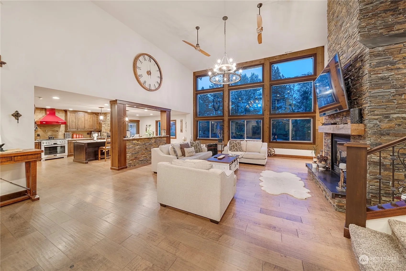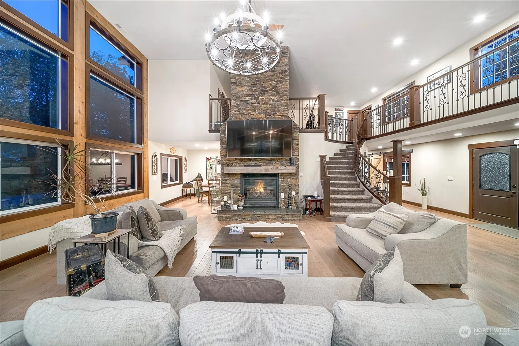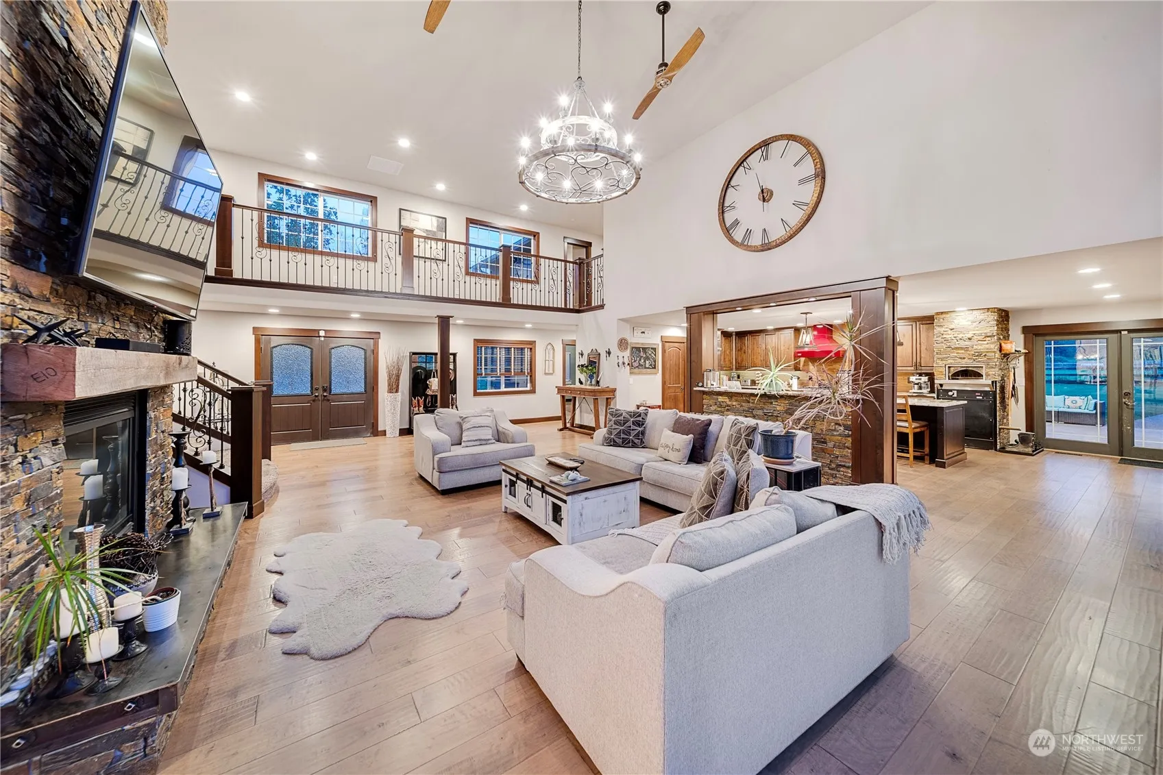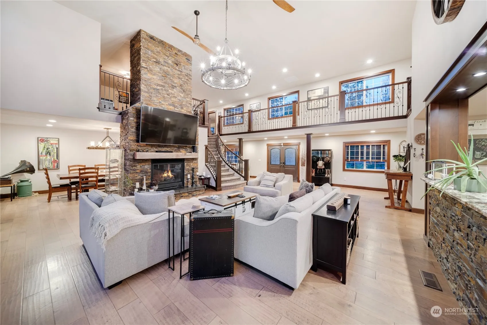 Escape to this lodge-inspired estate, perfectly located for serene living. Enjoy the backyard paradise with your very own fish pond & a small creek bordering the property. This sprawling home offers breathtaking views of Mt. Rainier and a spa-like main bedroom and bath. Entertain in style with a wet bar, a large dining area with a wine bar and cellar, and an expansive kitchen featuring a Viking gas range and Wood Stone gas pizza oven. Relax by the fireplace under soaring ceilings in the living room. Additional income potential from 1 bedroom apartment attached to main home & the detached 870 sq ft home. The lovingly maintained grounds feature a 24×36 barn, a 24×48 four-car garage, and a large loafing shed, with ample RV and tractor parking.