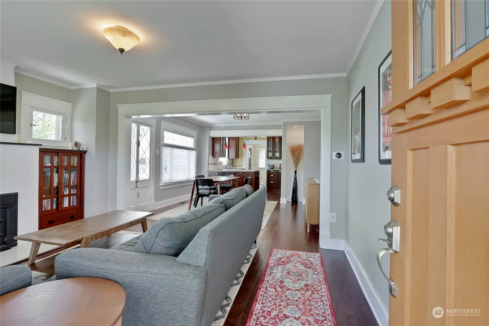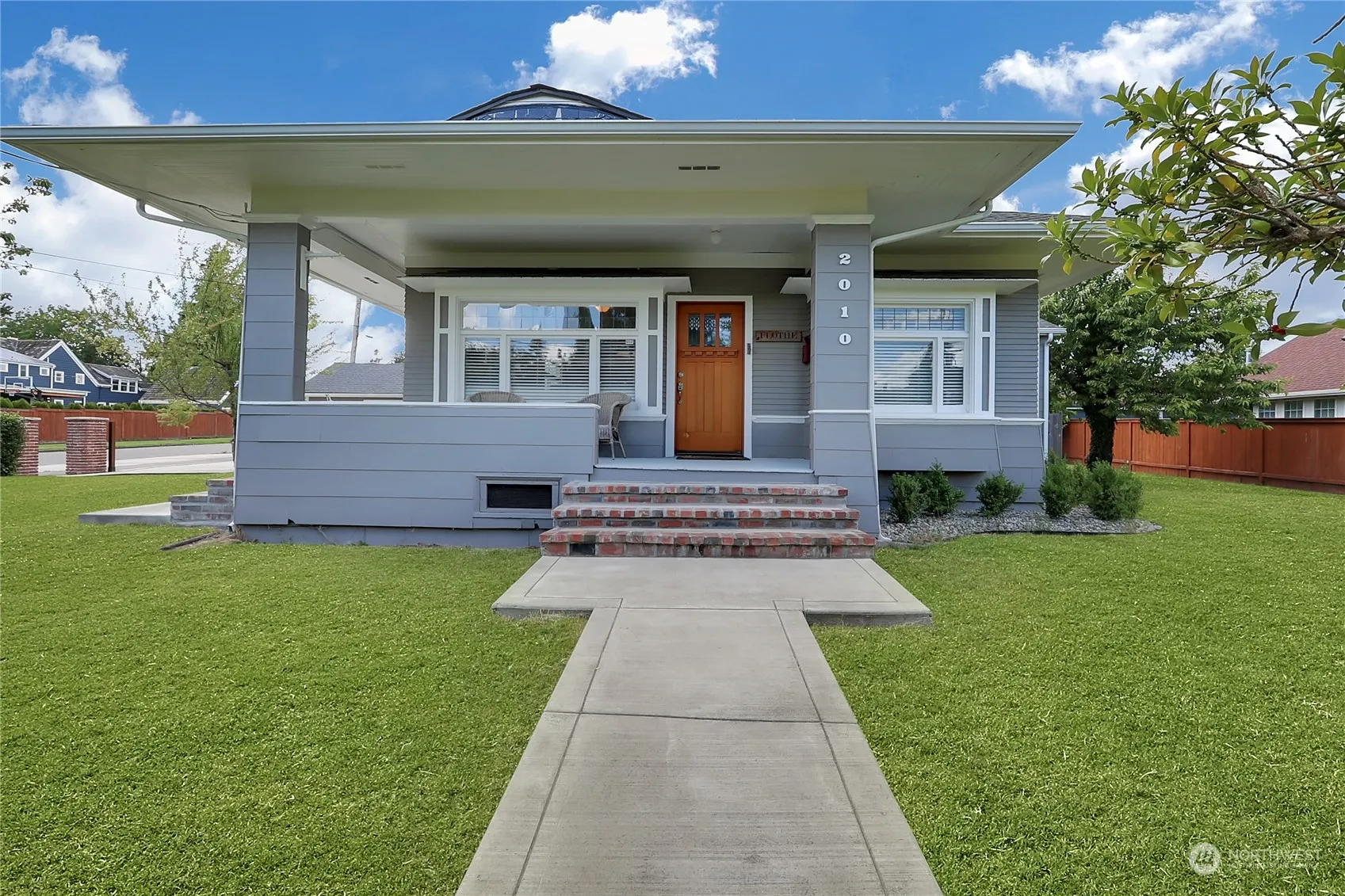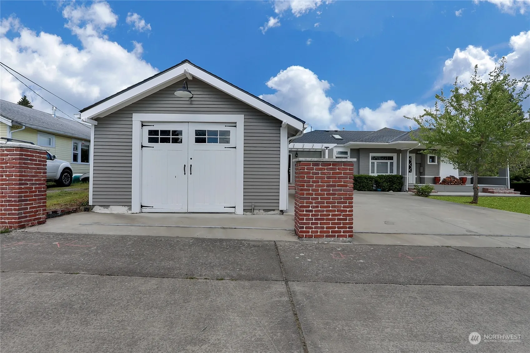 Charm and attention to detail overflow in this Enumclaw Craftsman within convenient distance to bars, shops and restaurants. This large corner lot has a detached garage and tons of parking with mature landscape and fencing making this property feel quiet and private. Inside, modern updates blend seamlessly with thoughtful renovations including stained glass doors and windows, original millwork, and hardwood floors. The kitchen is centrally located, with a great layout to maximize workspace and also leads into the mudroom entry on the side of the house. 3 bedrooms, including the primary with massive walk-in closet. Ensuite bathroom is spacious with heated floors and includes a classic clawfoot tub and custom marble shower.
