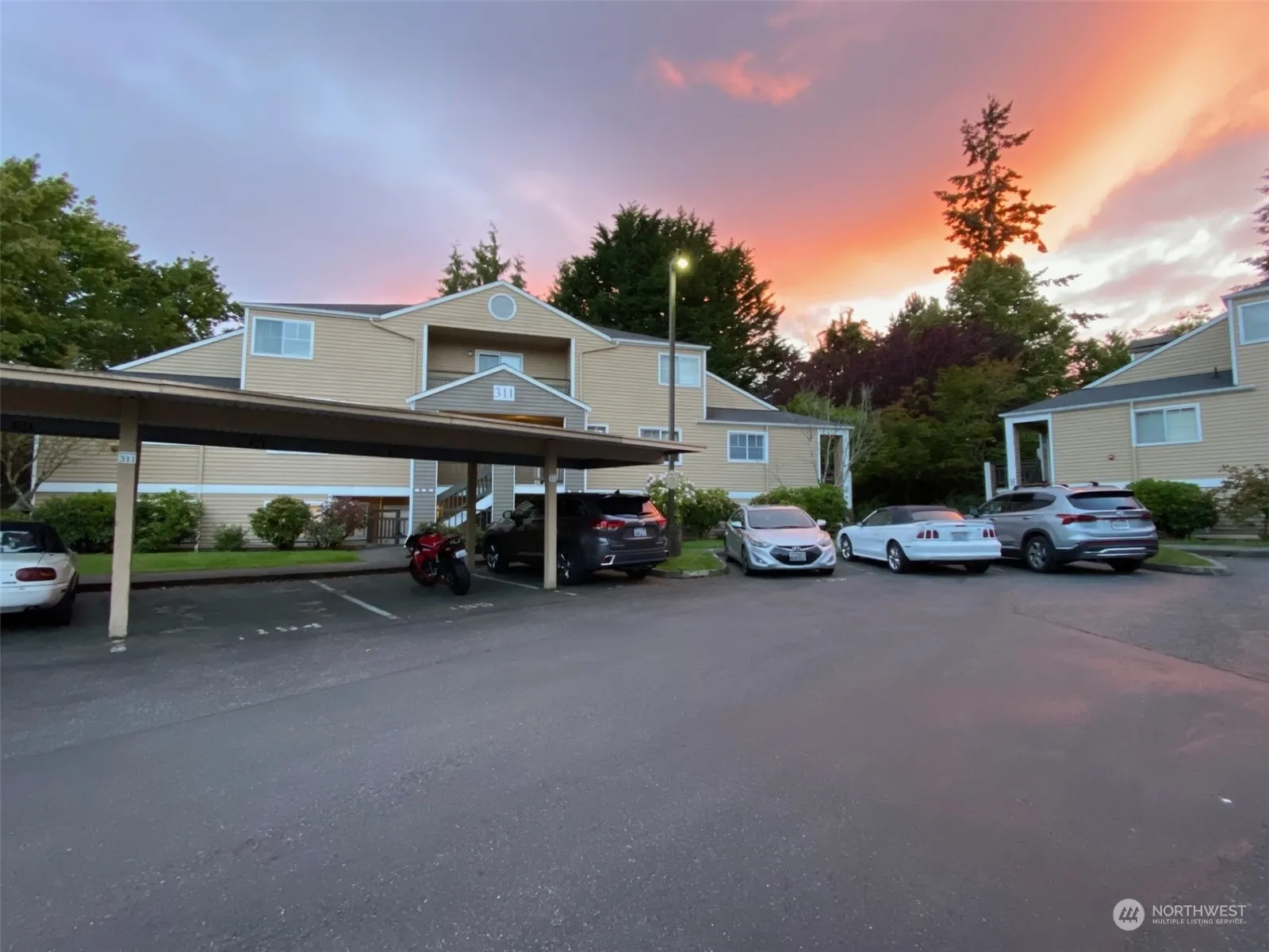 Welcome to desirable golf/views community of Harbor Pointe! Located in a planned development, convenient to employment, restaurants, shops, award-winning schools. Exceptional 1-bed, 1-ba condo with luxurious modern upgrades throughout! Located on 2nd floor (top level with no one above), vaulted ceiling; It’s also an end unit w/large picture windows looking at manicured lawns, plus 2 private decks (patio deck is covered!) and a storage closet. Kitchen has granite counters, tile backsplash, SS appliances, wood cabinets and pull-out drawers. Spacious updated bath. Wood floor, doors, millwork, plush carpet, freshly painted. Upgraded lighting & fixtures. Clubhouse w/outdoor pool. Exceptionally rare with TWO reserved parking: Carport + Uncovered.