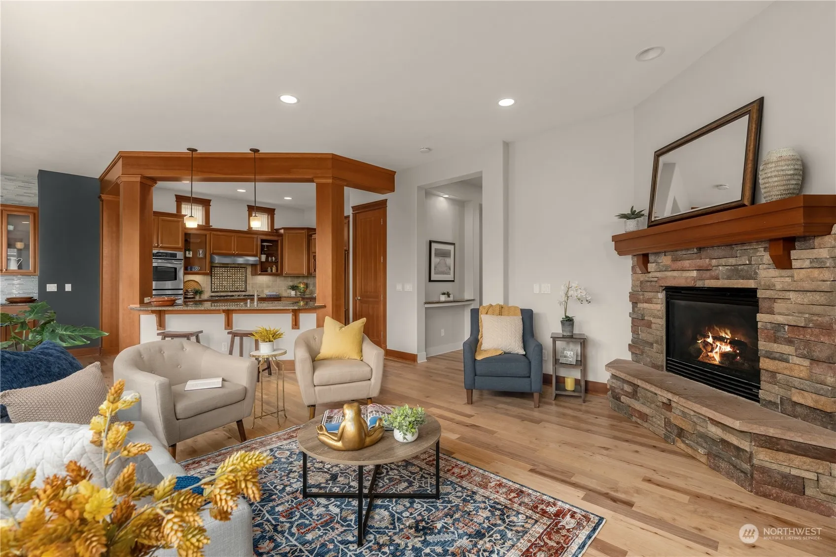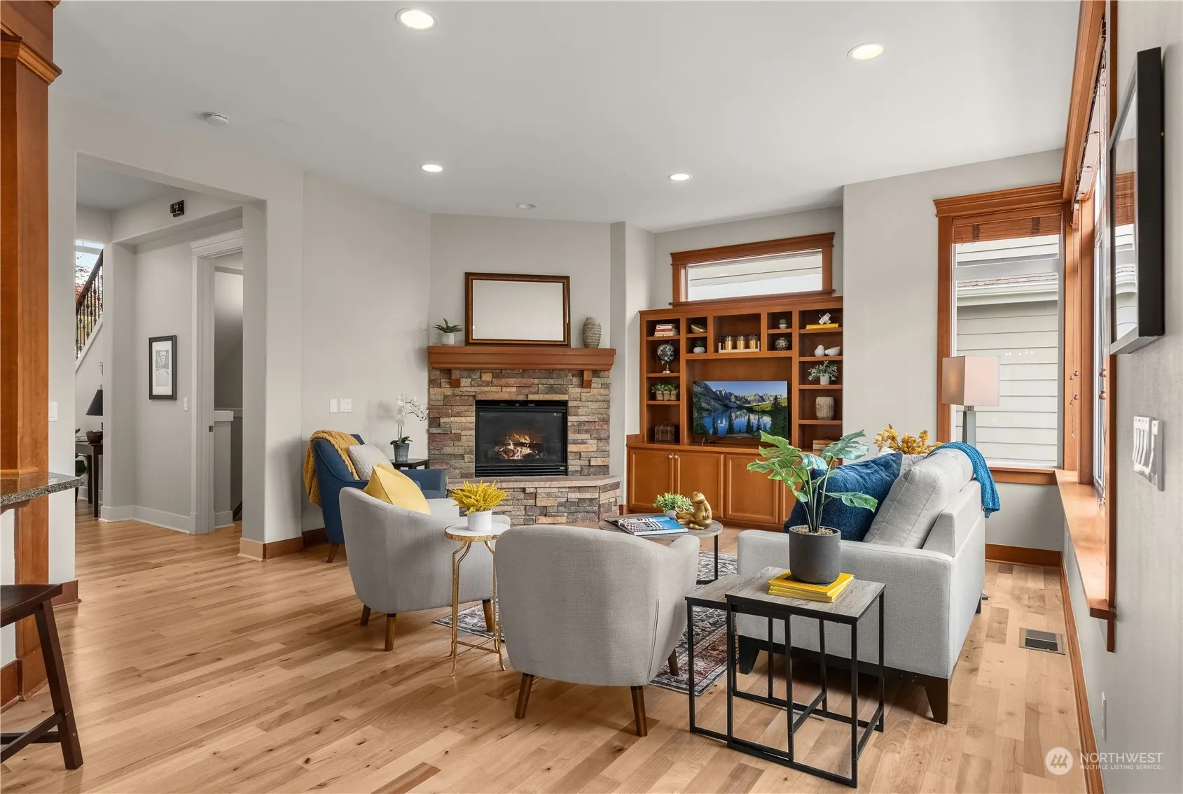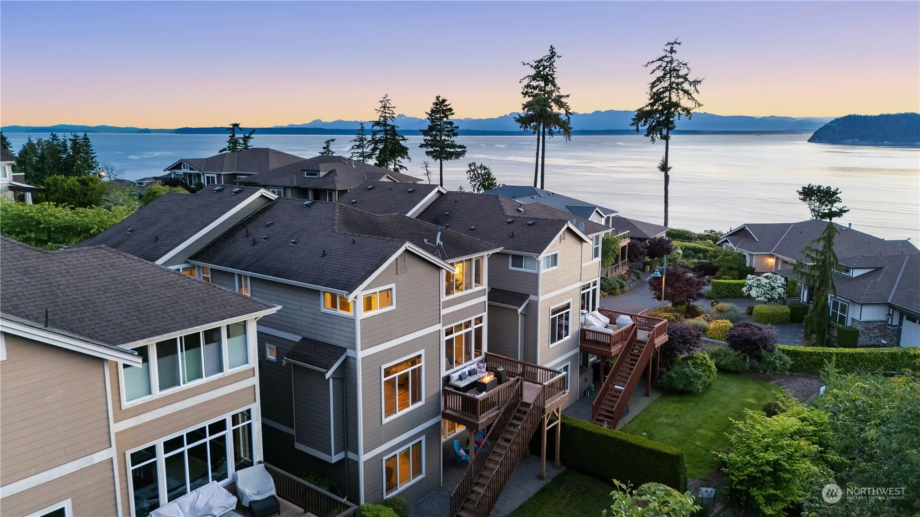 VIEW HOME! Welcome to the coveted gated community of Waterton. Appreciate the timeless craftsmanship of a Burnstead home while you wake up to the sun rising on the Olympic Mtns & end each day with your favorite drink as you watch the sun dip behind Whidbey Is. Large primary offers breathtaking views, WIC, and generous primary bath. Two more bedrooms up incl. Jack & Jill bath. Views from each level, additional living space down includes wet bar & fireplace, impeccable hardwood floors, this is a must see. One of the few Waterton homes with a backyard! Plus just across from community park!! Deck, plumbed for gas. Dual zone heat/AC, and more. Be sure to explore the serene community bluff trail with incredible views.
