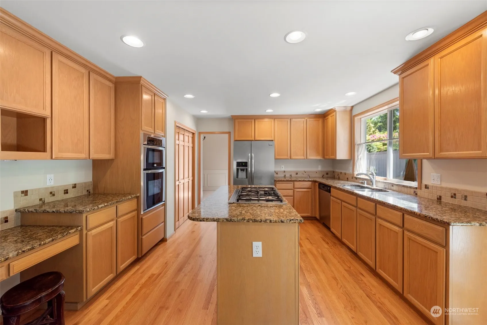 Nestled on a .23 acre site in a coveted Harbour Pointe Golf Course community, this model-quality Lozier home has it all! Elegant 2-story tray, coffered & vaulted ceiling entry creates the inviting atmosphere, and natural light filled with skylights & large windows. Meticulously maintained, main floor has formal living & dining, 2 fireplaces, family room off the cook’s kitchen w/granite countertops, tile backsplash & SS appliances, and a den/office/guest room. Upper level features a lavish master suite w/ 5-piece bath & view deck, and three additional bedrooms. Spacious three car garage. Private home with lush landscaping and surrounded by the beautiful scenery!