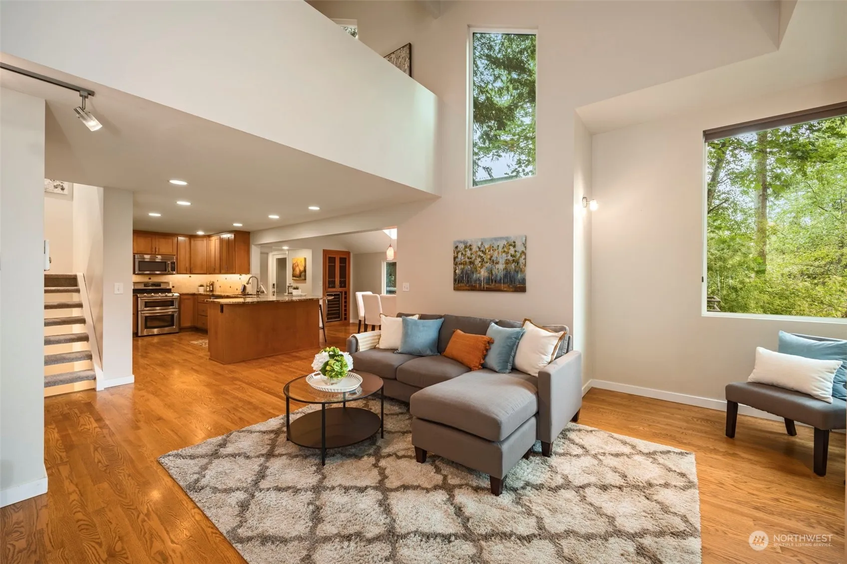 SECLUDED Pacific Northwest Contemporary home lets you experience serene living with picturesque territorial views. Meticulously maintained with several upgrades: New carpet & paint, 2023-roof, 2020-windows, ductless heating/cooling, tankless on-demand water heater, built-in wine fridge/bar, and much more. At the heart of the home, you’ll gravitate to the renovated kitchen with gas stovetop, double oven, LG refrigerator with dual ice makers (incl round ice!), Bosch dishwasher, under-cabinet lighting & more. 2 Laundry rooms! Our favorite highlight is the large private deck, perfect for entertaining & enjoying the tranquil surroundings. Great Location with the perfect blend of privacy & convenience near amenities, parks, playgrounds & trails!