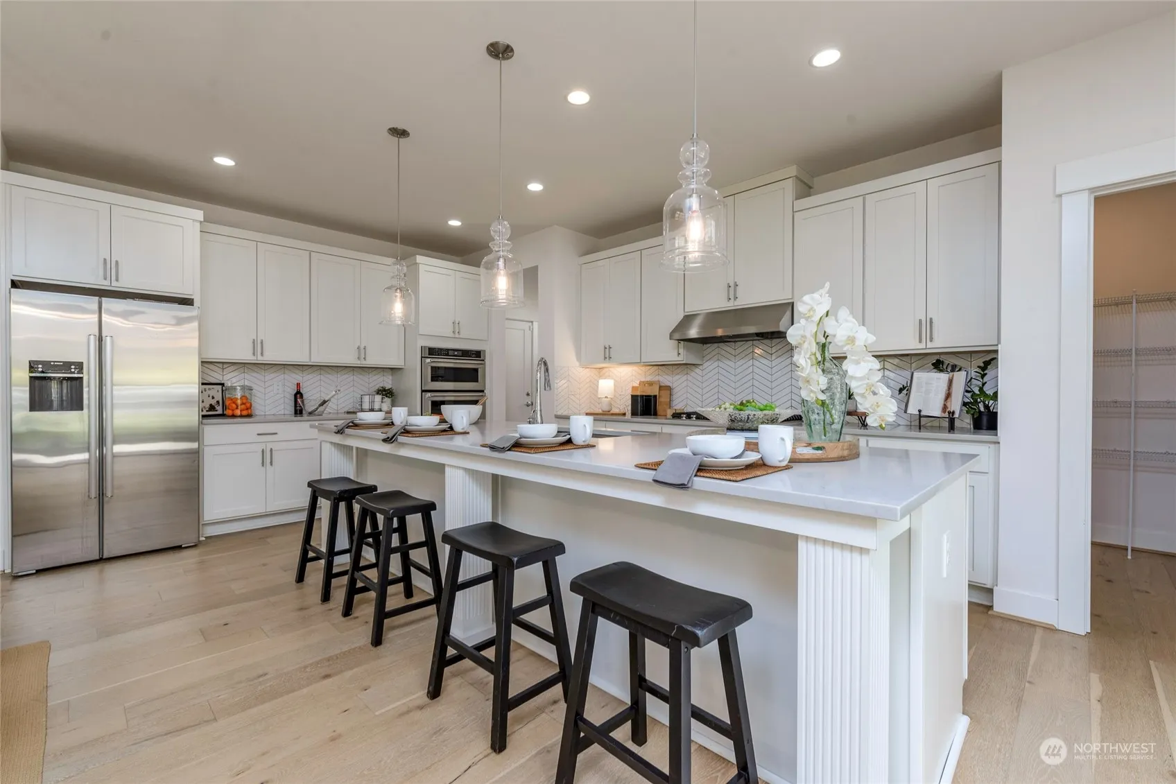 Modern Canterbury Park Corner Lot 2-Story! Enjoy plentiful natural light & convenient living w/ an open floor plan, designed to flow from the spacious living room through to the dining room & kitchen. Stainless appliances, quartz counters, a huge walk-in pantry & stylish millwork centered around a large prep island w/ bar seating make this kitchen a chef’s dream! Escape to the luxurious primary bedroom featuring a 5-pc ensuite bath w/ soaking tub, dual vanities & large walk-in closet. Great room upstairs delivers space to gather & relax, while add’l bdrms are ready for your needs! Fully fenced yard w/ patio provides low maintenance room for your summer BBQs & gardening. Central location w/ simple access to WA-520, I-90, shopping & more!