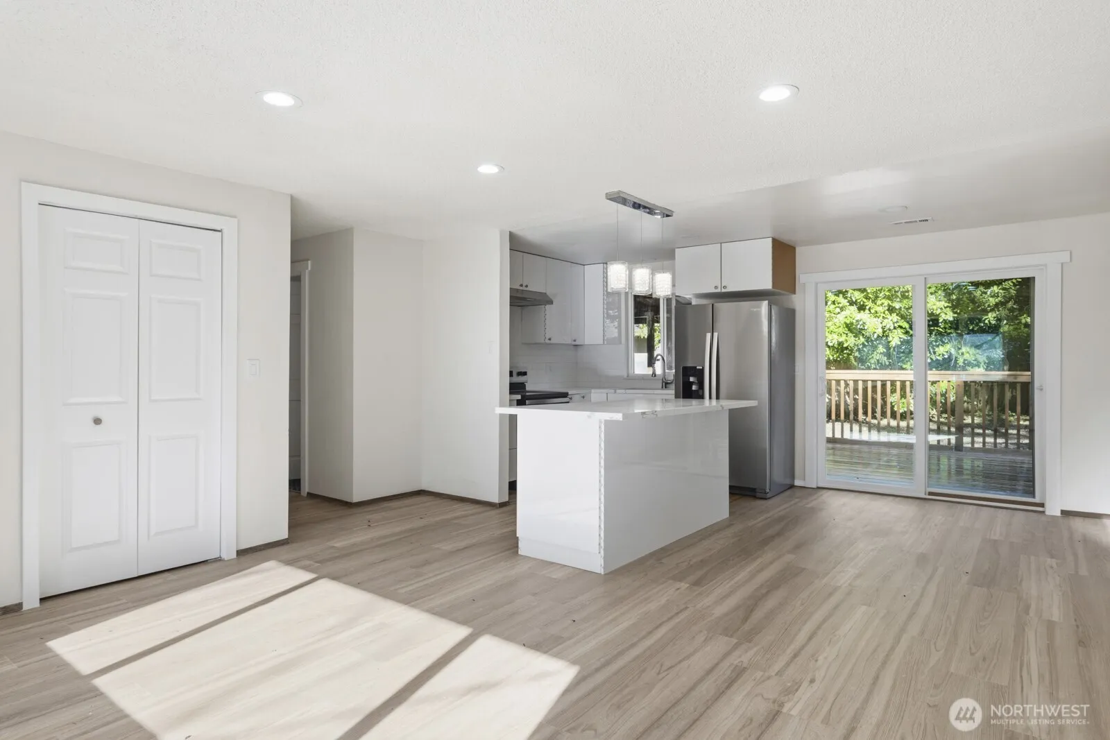 Welcome to this beautifully remodeled home in Olympia that also offers community access to Black Lake. Inside you will find a modern, updated kitchen with an island that offers more prep space for entertaining. Quartz countertops, pretty pendant lights, sleek white cabinets and stainless appliances. There is also room for a wine/drink fridge if you so desire. Not just one bathroom but two! Both bathrooms offer tile floors, gorgeous tile showers with a niche and modern fixtures as well as glass showers doors. New cabinets with quartz countertops and beautiful lit mirrors. This home also features durable LVP flooring throughout the living areas and bedrooms. There is a separate space that is partially divided to give you two great areas, not just one. Skylights in the bonus area help with natural lighting. Outside you will find that the home has recently been painted and the roof was replaced in 2025. The house is surrounded by mature trees to help give you the feel of privacy from your neighbors and shade from the sun. Enjoy time with loved ones entertaining on the oversized back deck and the additional covered back patio. Want to enjoy the amenities of the community? This house is close to the community park and boat launch for even more outdoor fun.