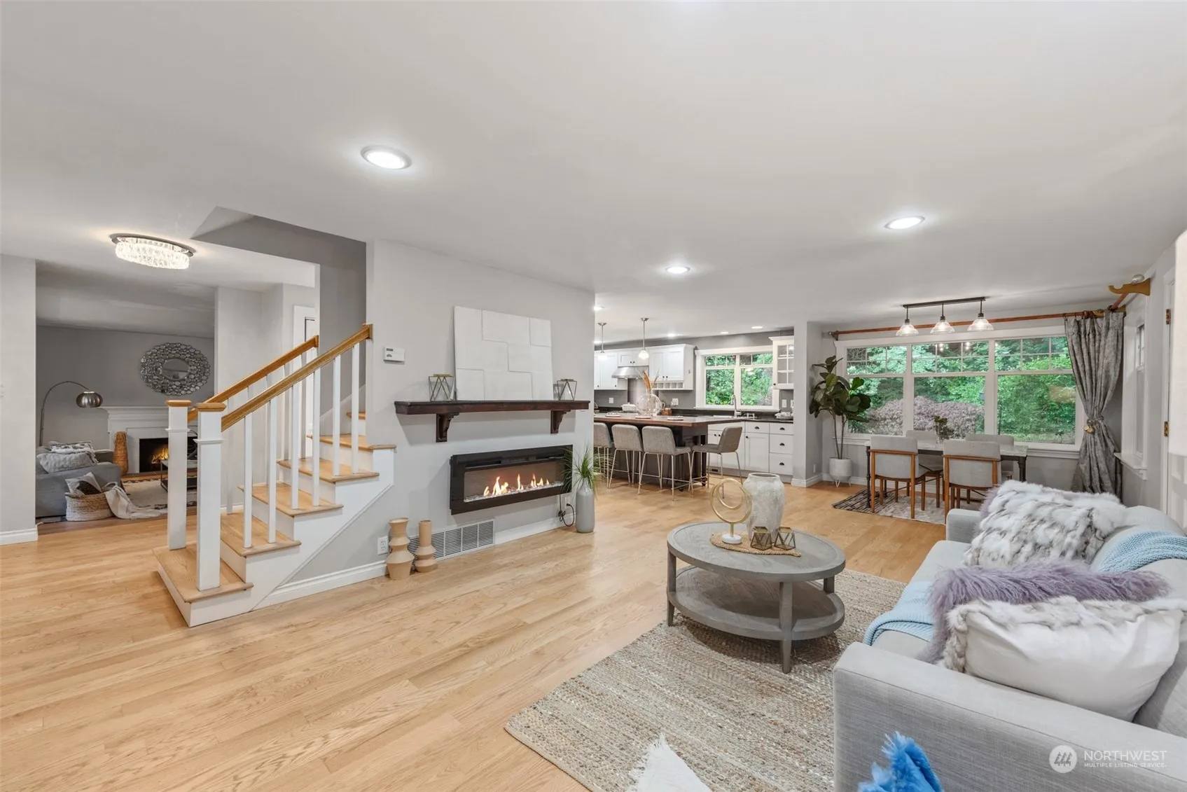 Welcome to this stunning NW-style farmhouse on nearly an acre in the heart of Sammamish. It features an open floor plan with newly refinished real wood floors & renovated chef’s kitchen. Walls of windows capture the beauty of all seasons, with blooms cascading from spring through fall. Enjoy a huge entertainment deck and a covered gazebo, perfect for summer BBQs! Primary bedroom with a balcony overlooking the greenbelt and a fully remodeled spa-like ensuite bathroom. Located on a quiet cul-de-sac. Prime location, just minutes to parks including Lake Sammamish State Park, with a short commute to Issaquah, Redmond, I-90, or 520. Award-winning LW School District with Eastlake High School. Pre-inspected!