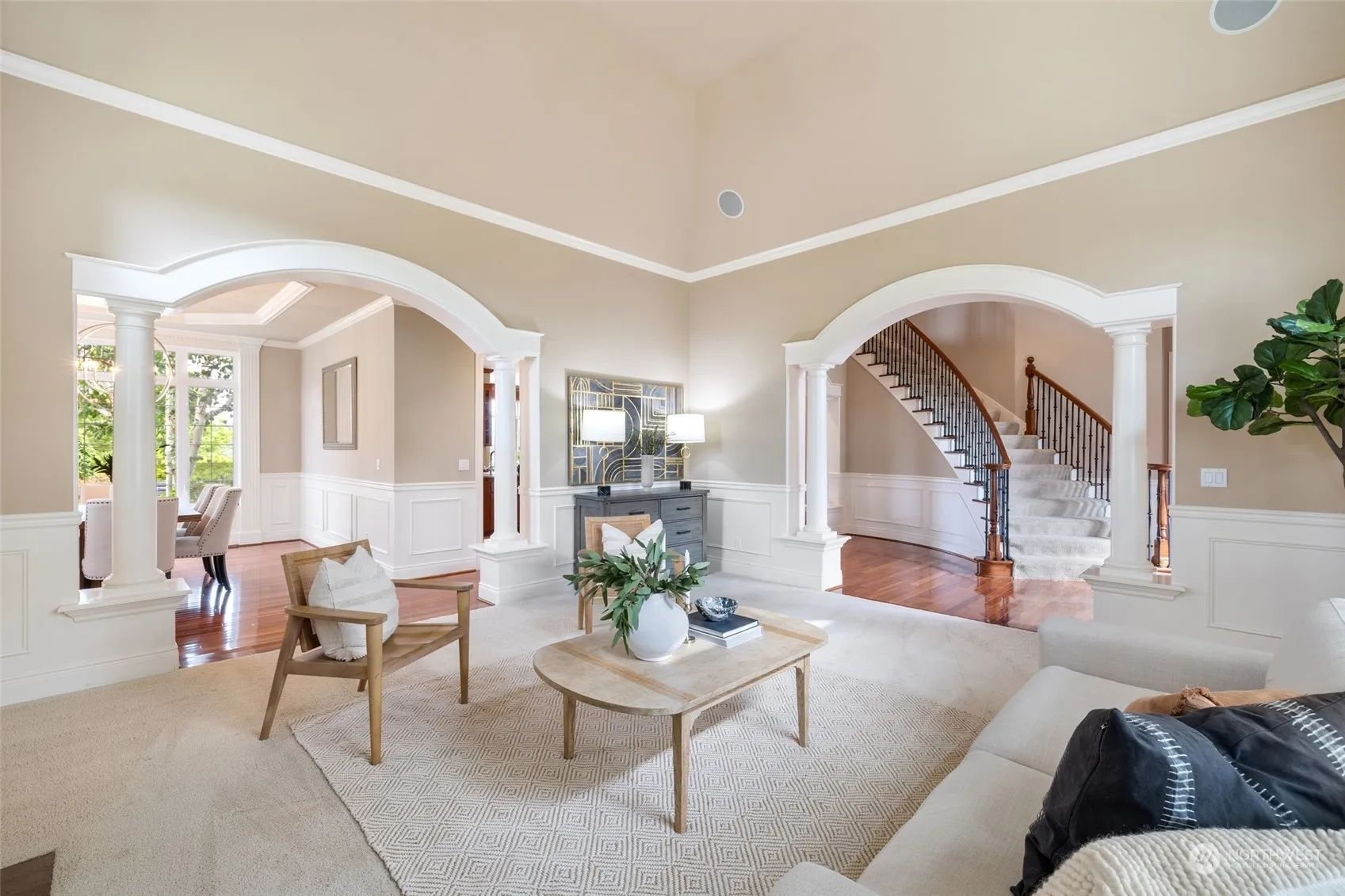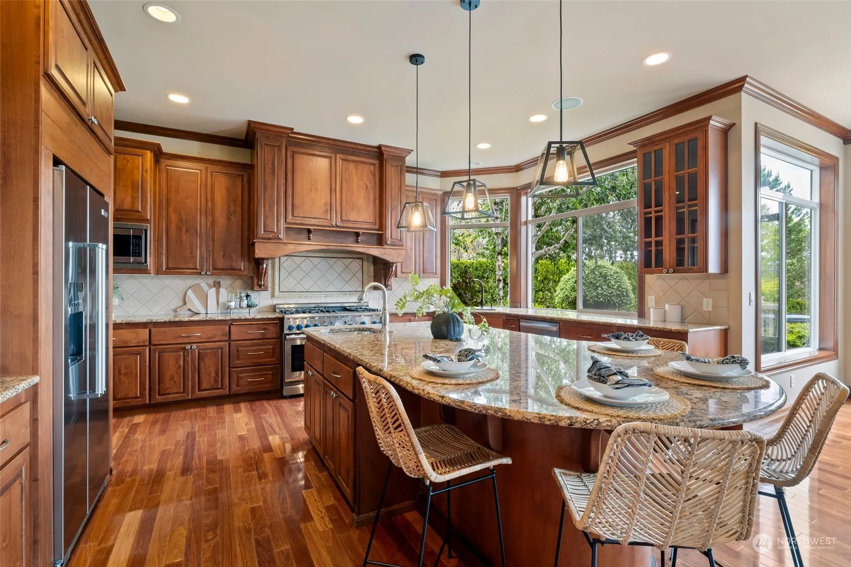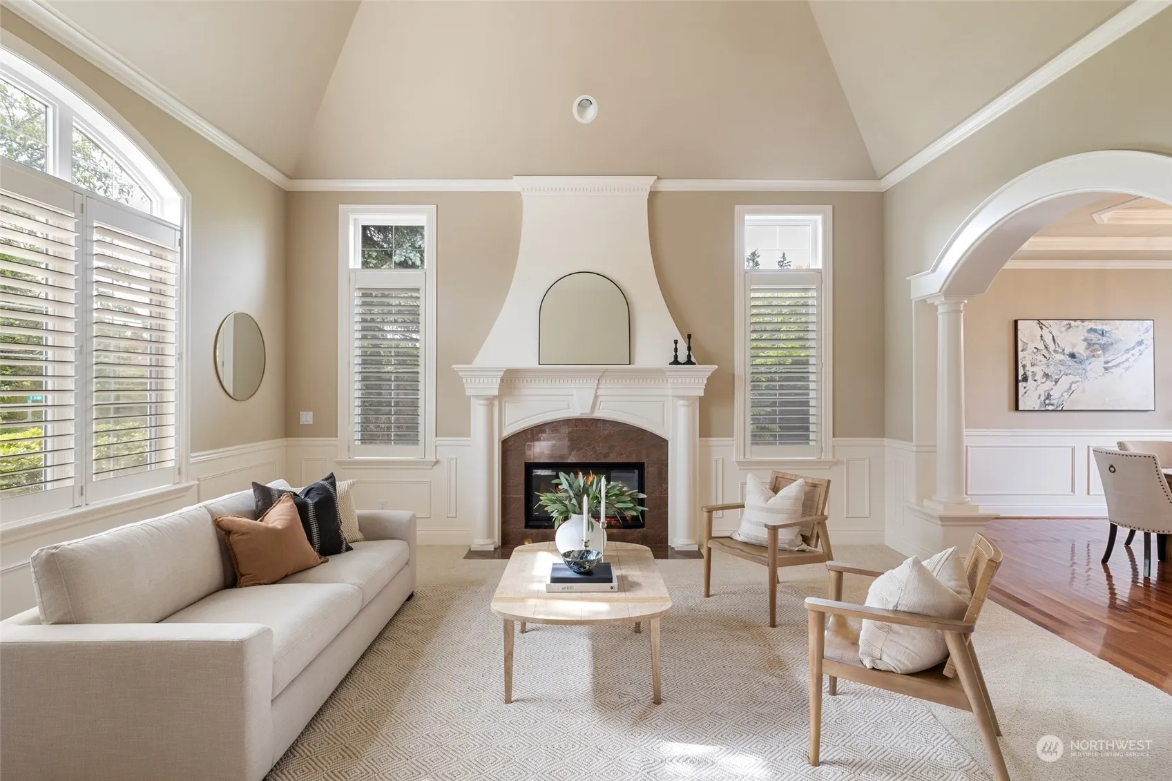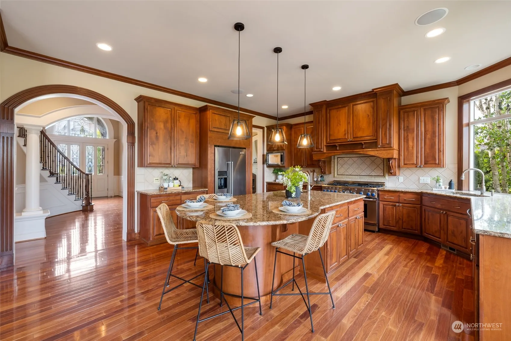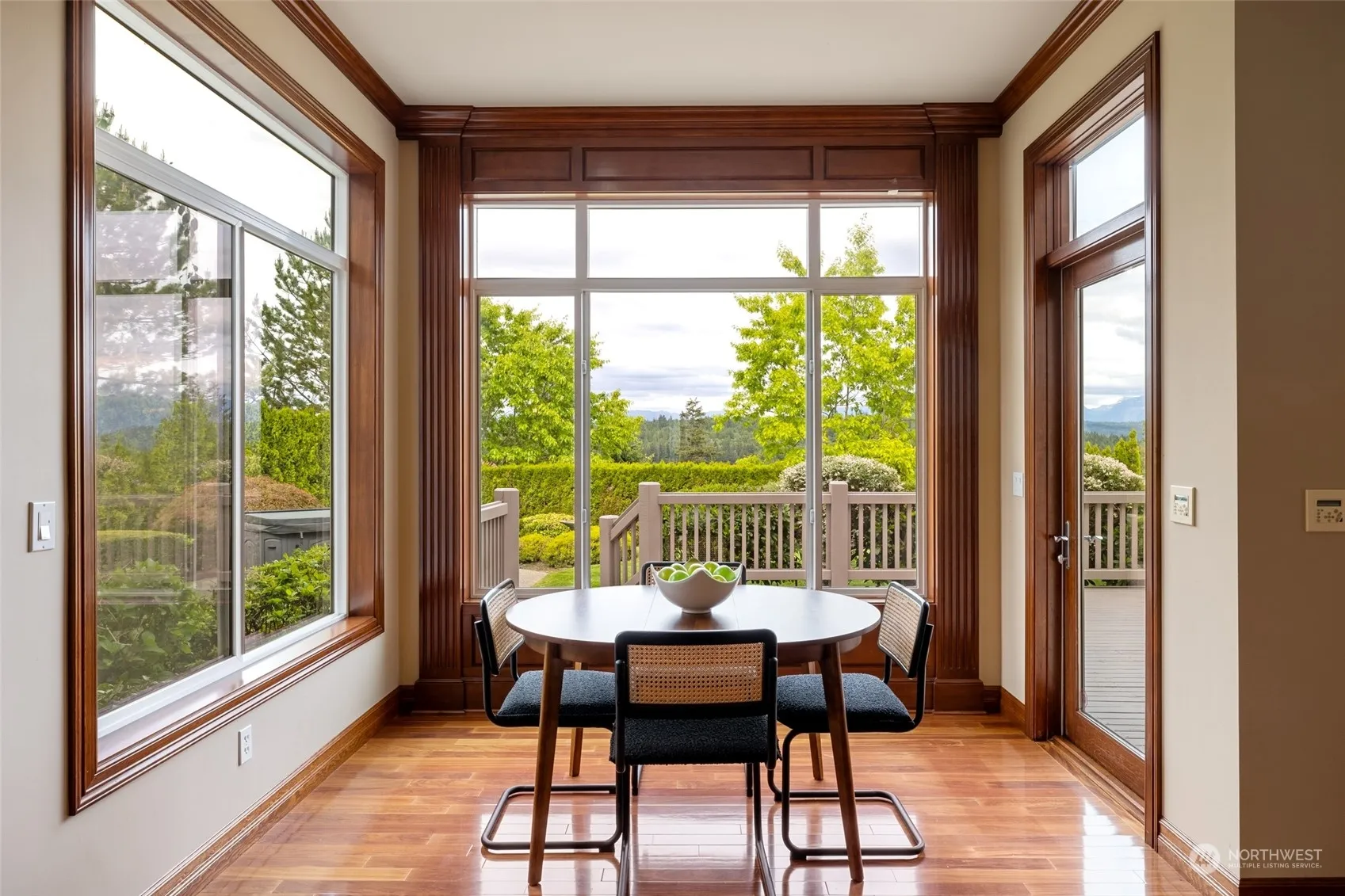 Nestled in Aldarra Estates, this John Buchan masterpiece commands attention as the distinctive showpiece of the community. Prominently positioned on a sprawling half-acre corner homesite, the residence basks in panoramic views that sweep across Cascade Mt & forested foothills below. The grand entryway makes an unforgettable first impression w/ its stunning wrought-iron circular staircase, graceful arches & stained glass, exquisite millwork, gleaming Brazilian cherry hardwood floors, & stately pillars. The thoughtfully designed floor plan includes 4 bedrooms & 1 office w/ shower, plus a media+bonus rm. Sumptuous primary room with fireplace & view balcony. Experience the ultimate private & serene estate w/ beautiful garden & view.