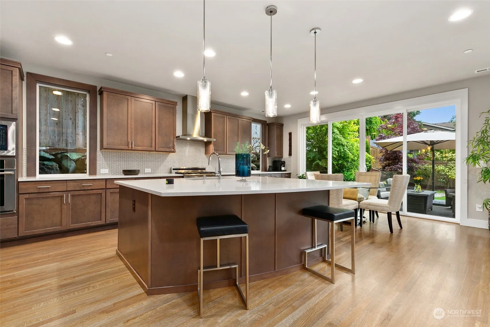Discover the epitome of modern living in this Murray Franklyn-built home, nestled in the desirable Sammamish Plateau. Boasting 5 spacious bedrooms, including a main floor guest suite, 4.5 elegant baths, versatile bonus room, main floor office, & inviting dining & great rooms, this residence is designed for comfort & style. The gourmet kitchen is equipped with SS apps, quartz counters & a huge walk-in pantry. Light & bright w/soaring windows & hardwood flooring, the home also includes smart home technology features, fire sprinkler system, & smart irrigation. Situated on a cul de sac with a fully fenced yard w/extended patio, & featuring a 3-car garage w/Tesla charger, the home is conveniently located near shopping, parks, & Lake WA schools.