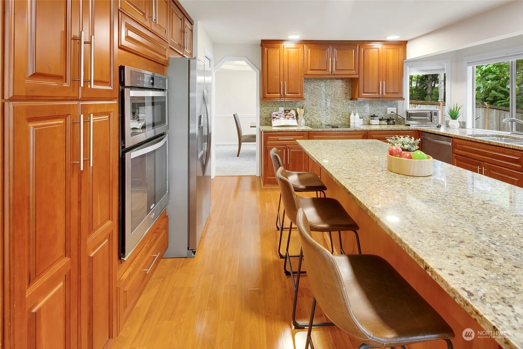 Welcome to this stunning updated 4-bed Sammamish home featuring an entertainment-sized gourmet kitchen with granite countertops & SS appliances. Cozy up in the family room by the gas fireplace as you enjoy views of the fenced backyard oasis with an oversized patio, perfect for gatherings or quiet enjoyment. Upstairs, a bonus room & generously sized bedrooms await, including a primary suite w/an ensuite bathroom. The property includes a 3-car garage w/custom storage room or hobby space, EV charger & additional space to park recreational vehicles. Fresh interior paint & a new furnace add to the appeal. Just a 3-min drive to downtown Sammamish with all of its shopping, restaurants & local parks. Easy 520 commute to Redmond, Bellevue & Seattle!