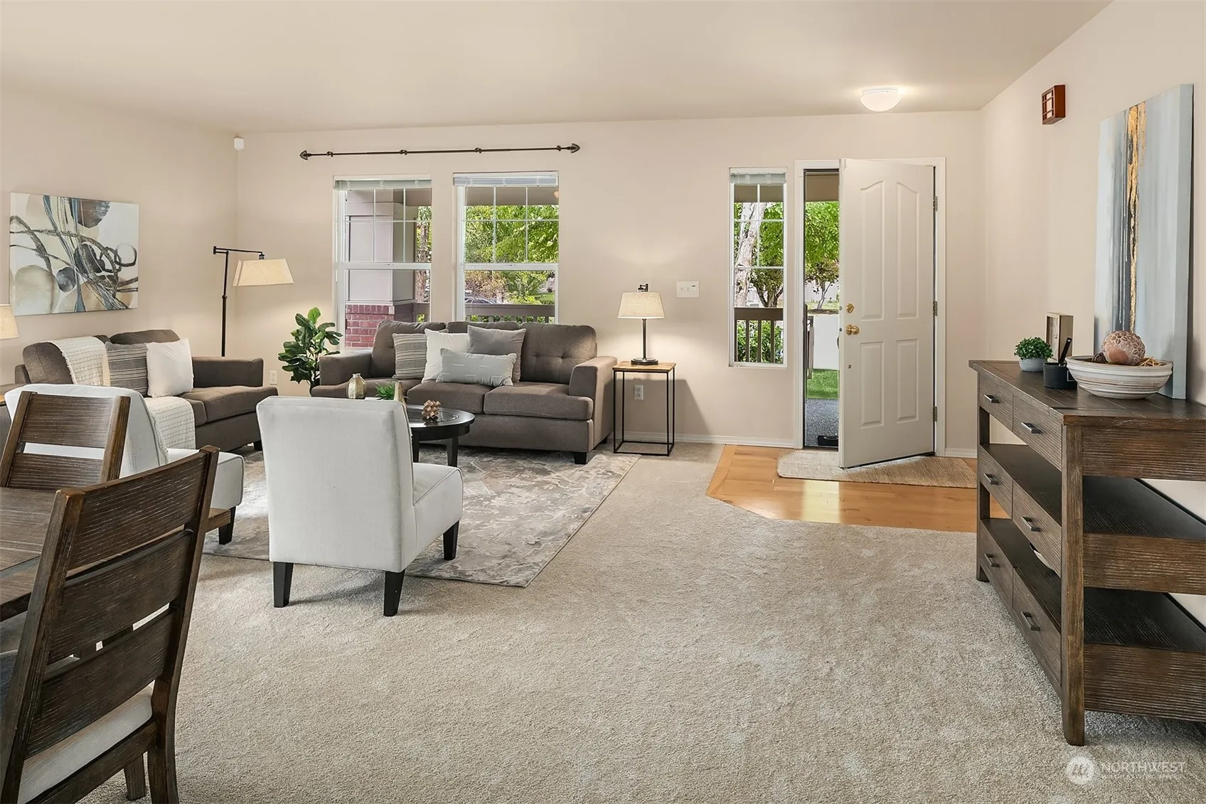 Warm and welcoming throughout. This home is designed for entertaining with formal living and dining rooms and a great room for everyday living. Spacious kitchen, new quartz counters, stainless steel appliances, island, walk-in pantry. Enjoy relaxing in the family room with gas fireplace. Upstairs is the oversized primary suite, large walk-in closet, private bath, new tile floors, new quartz counter, new vanity lighting. In addition, there are 3 more bedrooms and an open loft bonus area upstairs. Brand new carpet, new forced air gas furnace, new roof in 2022. A/C will be welcomed in the summer. Enjoy outdoor living in the fully fenced backyard with its mature landscaping, lush lawn, patio and a storage shed. Location is key!