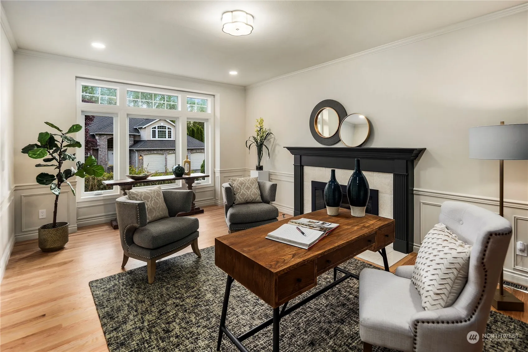 A once in a lifetime opportunity to own a stunning renovation of a Murray Franklyn home on the largest lot (.7 acres) in sought-after Hidden Ridge. Experience stately elegance in this Modern Colonial inspired home where Sellers spared no expense. Entertain in a dream kitchen w/ luxury appliances, quartz counters & gold designer accents. Host in style in the open-concept living room or formal dining room adorned w/ mural wallpaper. Gather in the oversized family room with soaring 16-foot vaulted ceilings & a custom millwork wall. In the sprawling Owner’s Suite you’ll find a spa-like 6-piece bath + 2 walk-in closets, one of which is a deluxe dressing room w/ vanity. WFH productively in the expansive office. Short drives to Redmond & Bellevue.