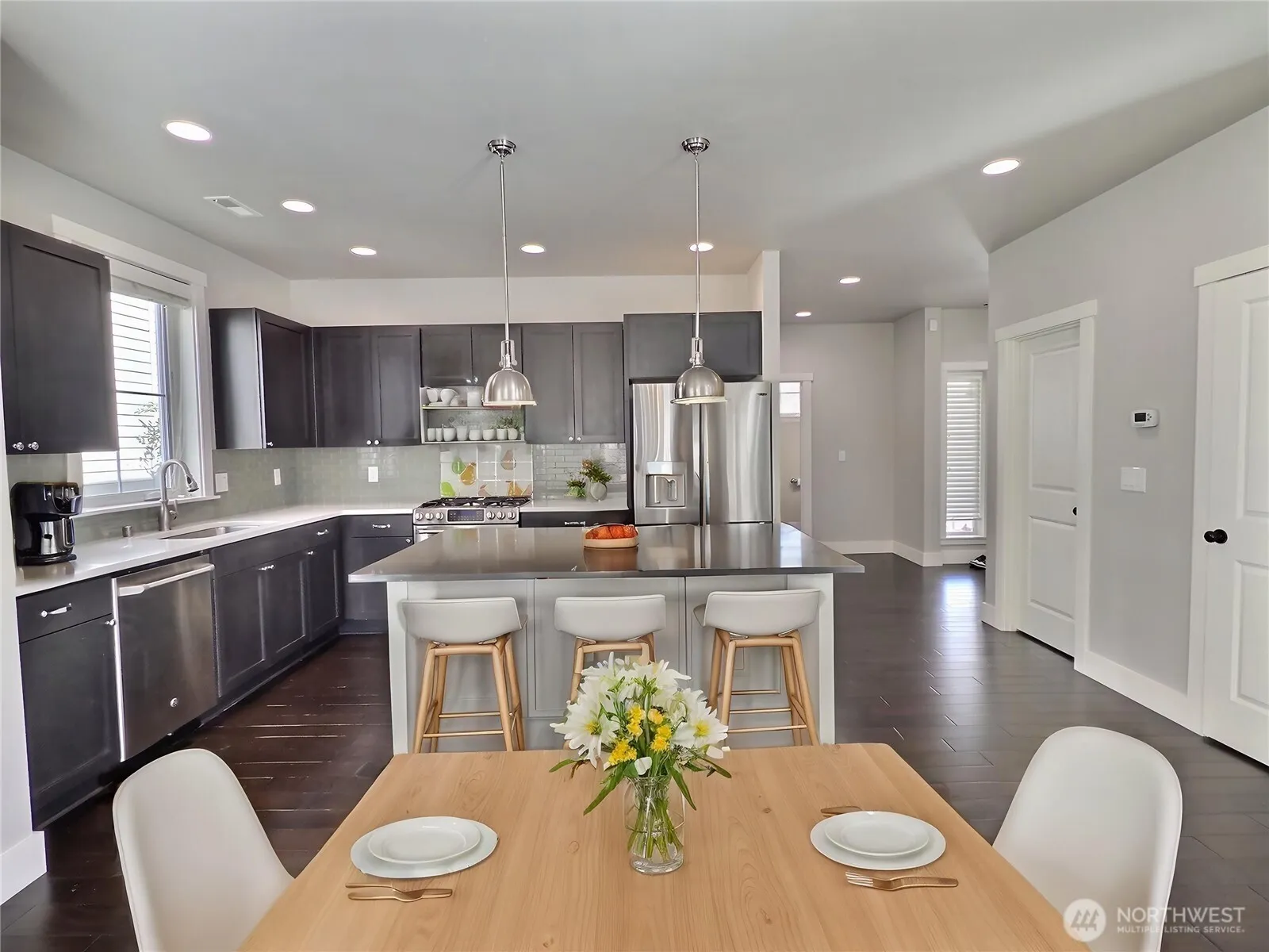 Welcome to a home that perfectly balances sleek contemporary design with the warm, inviting atmosphere. features high ceilings open floor plan that includes a bedroom on the main. Bright open kitchen boast modern cabinetry and elegant quartz countertops with stainless steel appliances. Upper level features the generous primary bedroom with 5-piece spa-like bath—your personal haven for relaxation. Laundry room and additional 3 bedroom and a full bath completes the upper floor. Fresh new interior paint. Summer memories are waiting to be made on your private deck and in the charming, easy-to-maintain yard. With a detached garage, you have plenty of space for your vehicle and gear. minutes away from the iconic shores of Green Lake, the shopping hub of Northgate, and the vibrant eateries of Greenwood. With lightning-fast access to Downtown Seattle and Ballard, the entire city is at your doorstep. Requirements: 3x income, Credit Score min 700.