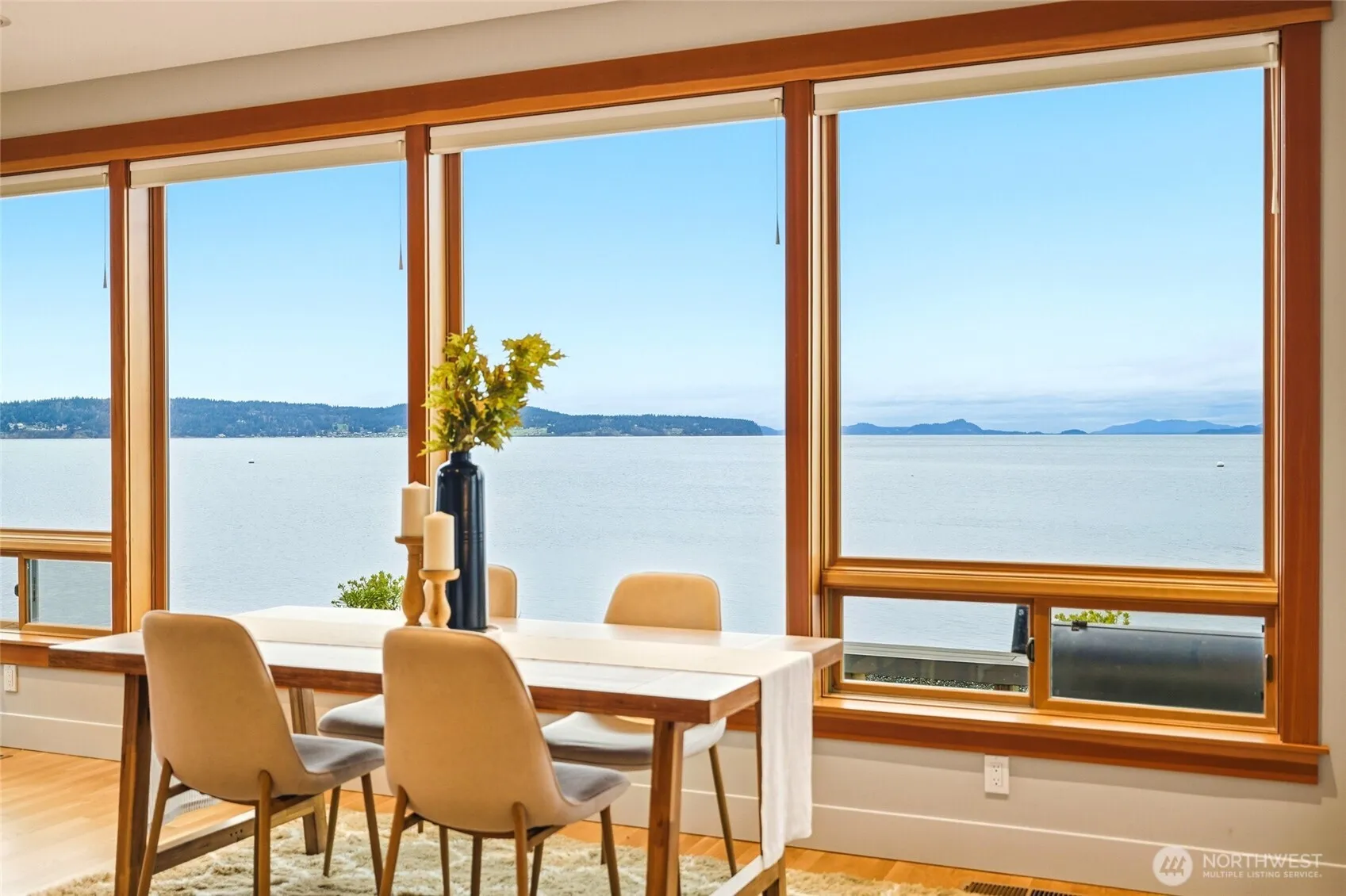 Exceptionally well planned custom waterfront home on Camano Island’s iconic Utsalady Bay, designed to accommodate full or part time residency. Stunning unobstructed views. Innovative floor plan. Beautiful natural easy care materials. Built for comfort w/quality & style! A welcoming veranda, front door & tile entry open to a light filled living/dining great room. Expansive wood clad windows showcase stunning water views, floor to ceiling fireplace, built in shelving, hardwood floors. Chef’s kitchen open to great room; all SS appliances; Pykal fridge & 8 burner gas stove w/double ovens, Bosch dishwasher, mic in drawer, large island w/seating. Granite. Gorgeous wood cabinetry. Tile. Access to covered porch, extensive deck and the beach! Storage w/set up for 2nd utility. Pantry & closets along hall leading to powder room & large family room w/wet bar & fridge. Main floor primary w/ensuite bath. Upstairs; utility, office, another bedroom & 2nd primary suite w/luxury bath, views & balcony. Hardwoods, SS, granite, wood cabinetry & trim, Fr doors, wide hallways throughout. Heated tile floors in kitchen & baths, Oversize 2 car garage w/work space, 3/4 tile bath below, rec room above w/wet-bar & cabinetry; mini split & tankless hot water. Total sq ft includes rec room. House has 2 heat pumps, wired for generator, security & sound. Your own beach & tidelands, unobstructed views, low maintenance irrigated grounds, parking galore, north end location. No HOA. The best of island living!