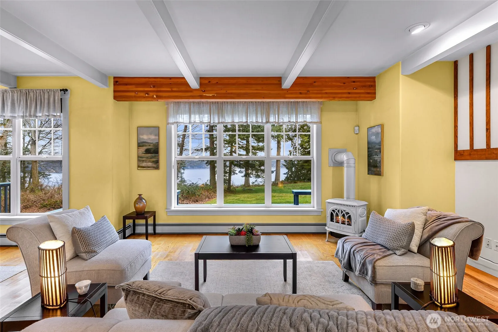 $10,000.00 SELLER CREDIT! Experience the ultimate island retreat on this breathtaking almost 3-acre high-bluff waterfront estate on Camano Island. Boasting sweeping, panoramic views of Puget Sound, Port Susan, and the mountains with tideland rights, this private sanctuary offers a rare blend of serenity and scenery. The welcoming interior shines with warm hardwoods, rustic exposed beams, and a grand two-story entry. Designed for the home chef, the open kitchen features granite countertops, stainless steel appliances, gas cooking, and a center island with a butcher block top. High-end details abound, including a touch faucet with marble backsplash, recessed lighting, and a trash compactor. Relax by the living room’s gas stove or retreat to the convenient main-level primary suite with a full ensuite bath. Upstairs, two oversized bedrooms offer elevated views, complemented by a large dual-vanity bathroom. Step outside to the expansive composite deck to soak in the salt air from the hot tub, or lounge on the charming covered porch. The exterior features a durable blend of wood and Hardiplank siding. Practicality is a priority with a large laundry room (sink included; W/D stay), a main-floor powder room, and an oversized 2-car garage with 8’ doors—plus ample space for RV parking. This is more than a home; it’s a front-row seat to the very best of the Pacific Northwest!