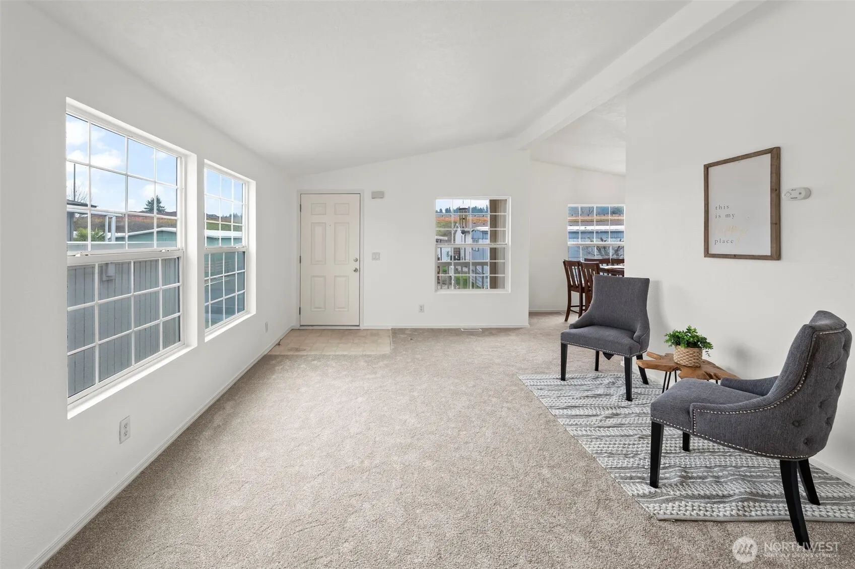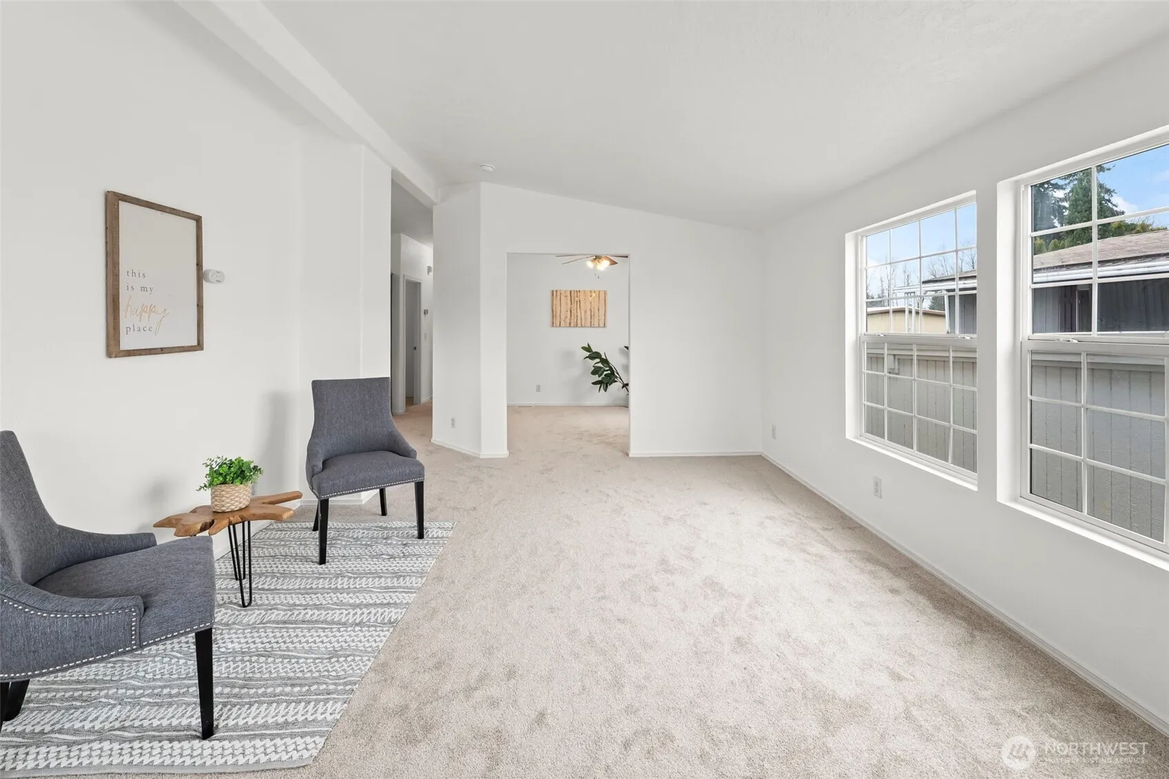 Experience the perfect blend of comfort and convenience in this impeccably maintained 1,200 sq ft home located in one of Puyallup’s premier 55+ communities. Nestled in the heart of downtown, this home has been refreshed with brand-new carpet and refreshed paint creating an airy, “light and bright” atmosphere that feels like home the moment you step inside. The thoughtful floor plan features a large kitchen, huge family room, formal living room, dining room and a full size laundry room as well as 2 spacious bedrooms and 2 bathrooms, the massive primary boasts a huge walk-in closet and an oversized private bathroom, with tons of counter space and a large shower. The secondary bedroom is perfect for guests or a home office, and has tons of natural light it is situated near the second full bath for maximum privacy. Enjoy a large, light and bright, open living area that flows seamlessly into the dining space—ideal for entertaining or quiet afternoons. This home also has AC for comfort all year round. This home is 100% move-in ready; all the hard work has been done for you! Living here means you’re just minutes from the Puyallup Farmers Market, local dining, shopping, hospitals, freeways and the Sounder train, all while enjoying living in an established and sought after community that includes a workout room, onsite laundry, and a community center. If you are looking for a low-maintenance lifestyle without sacrificing space or quality, this is the one all for under $100k!!