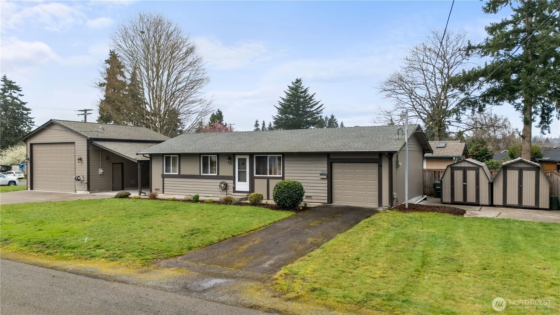 Garage enthusiast’s dream on a spacious corner lot! This single-level home offers a rare combination of functionality, space, and location in Puyallup’s downtown. The standout feature is the impressive 24×36 heated and insulated shop (approx. 864 sq ft) fully equipped with 200 amp service, 15 ft door, hydraulic vehicle lift, built-in compressed air, bathroom, and its own dedicated power meter; perfect for hobbyists, collectors, or anyone needing serious workspace. Additional highlights include an attached garage, multiple storage options with sheds and shop add-ons, plus a carport with RV sewer hookup. The large, flat lot provides ample parking for RVs, boats, and multiple vehicles, with room to garden, entertain, or expand. Enjoy fresh updates including new exterior paint, vinyl windows, new carpet, and flooring. Ideally located just minutes from parks, schools, dining, and easy highway access, this property delivers the perfect blend of convenience, versatility, and opportunity.