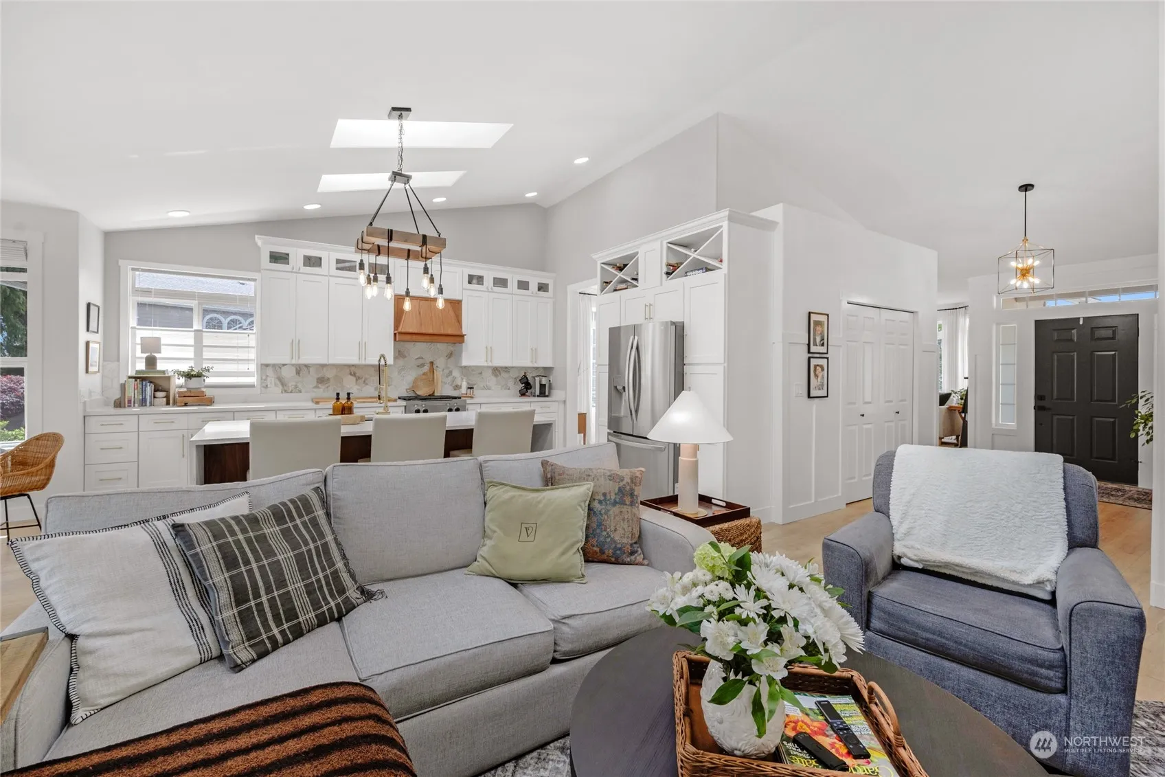 Stunning Gleneagle rambler w/terrific golf course views, located behind the 2nd green, south facing b/yard is out of the way of golfers errant shots. Interior has been fully remodeled, shows like new const. New cabinets w/pullouts & soft close, Quartz counters, SS applc’s, laminate hrd/wd flooring, new vanities & fixtures throughout. Solid core doors, board & bat treatments, custom fabric Roman blinds, fresh paint inside. New 90% gas furnace & H20 tank, 50 yr comp. roof, heat pump provides AC for hot days. Sprinkler systems front & back. Beautifully landscaped lot. Primary suite w/ double door entry, WIC w/custom closet organizer. French drs into the 3rd Bdrm. Covered patio for outdoor enjoyment. Recent updated landscaping & retaining walls