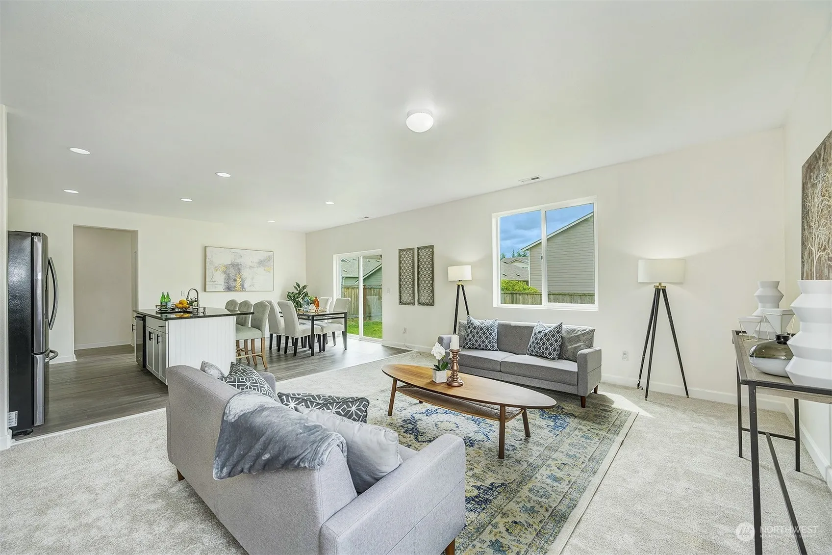 Assumable 2.7% FHA interest rate to qualified buyers. $60K+ in Upgrades! Stunning, like-new 2-story home offers 2,514 sq ft of luxurious living w/ 5 spacious bdrms & 3 full baths. The upstairs ftr. a lavish primary suite w/ an oversized walk-in closet w/ a 5-piece bath, three additional bdrms w/ large closets, a full guest bath,& a generous loft area. Laundry rm w/ a brand-new W&D adds convenience. The fully upgraded kitchen showcases a 7 ft granite island & nwr appliances. Main floor incl. a guest bdrm w/ a nearby full bath. Enjoy open-concept living w/ a large living area & dining space opens to a fully fenced backyard. Situated on a corner lot w/ a 2-car garage, it’s mins. from Smokey Point shopping, dining, Arlington schools,& HWY 9/I5.
