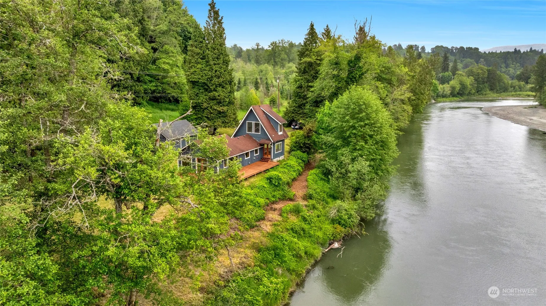 A beautiful and private oasis with over 1,200 lf of Stillaguamish riverfront! Hidden off of Jordan Rd and sitting on 3.42 acres, this home rests on the high bank along the river where you can enjoy uninterrupted views and tranquility morning, noon and night. The home layout has an open concept w/generous light on main floor and a large upper room w/vaulted ceilings that can serve as second bedroom, office space or studio. The land and infrastructure present innumerable options with a 3-bedroom septic, RV hookups, a detached 432 sq. ft wired shop, massive wrap around deck & tons of open/level land for additional recreation or income opportunity. Great river activity, fishing, trails and an additional tax parcel to the West. A rare gem!