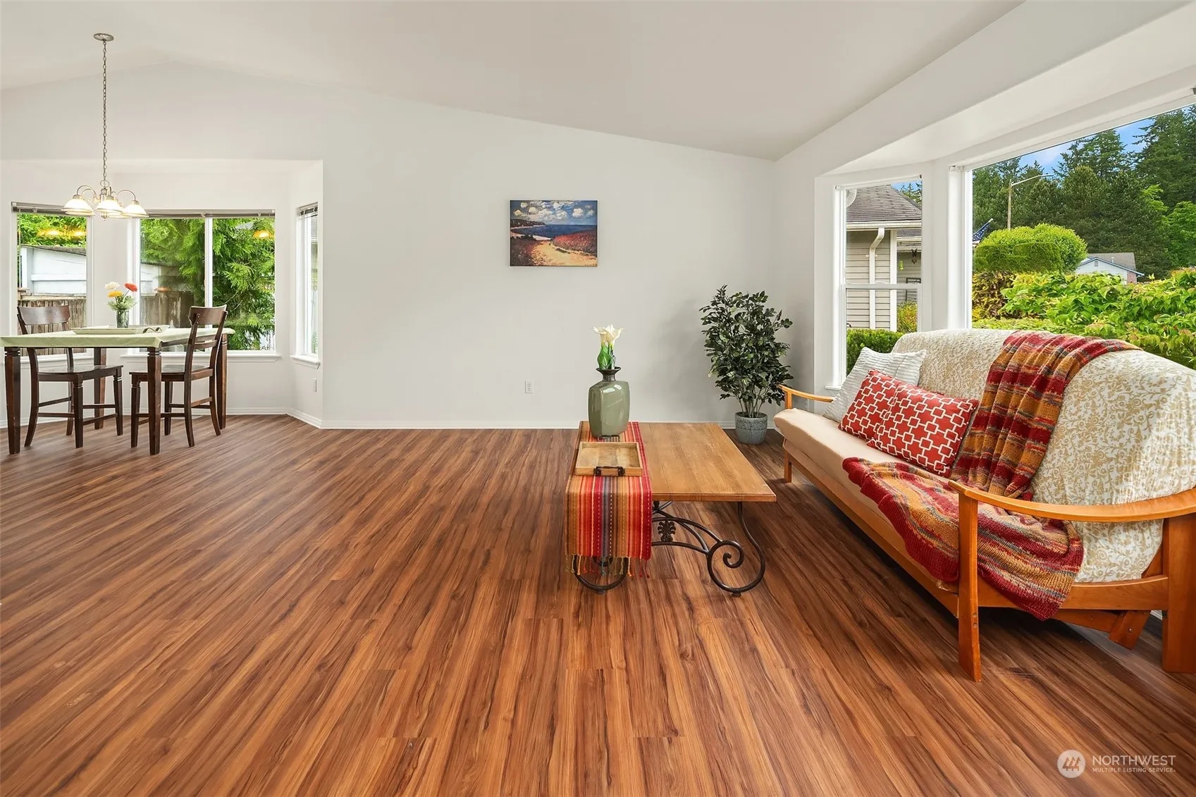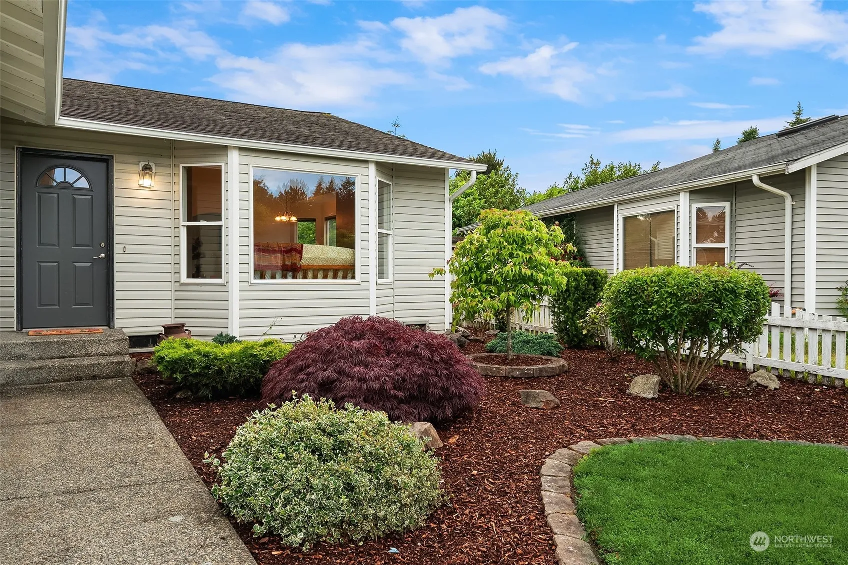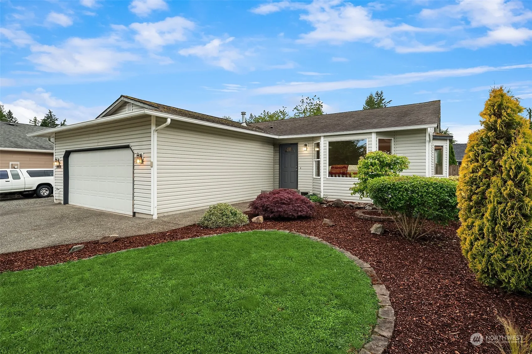 NEW PRICE in Desirable High Clover Park! Enjoy one level living, an open concept kitchen, bar & dining area all under sun filled sky lights & vaulted ceilings. Two living spaces with a welcoming gas fireplace in the family room & a drenched in natural light bay window in the living room. Generous sized bedrooms, primary with ensuite, soaking tub & walk in closet. New flooring, lighting & paint throughout! Fully fenced private yard with a covered deck, R.V. Parking, additional shed, low maintenance landscaping & garden beds just in time for planting! R.V. parking + more with gated access & an attached garage equipped with a work bench. Greenbelt areas for long dog walks & a great location minutes to I-5, downtown, airport, amazon & more!