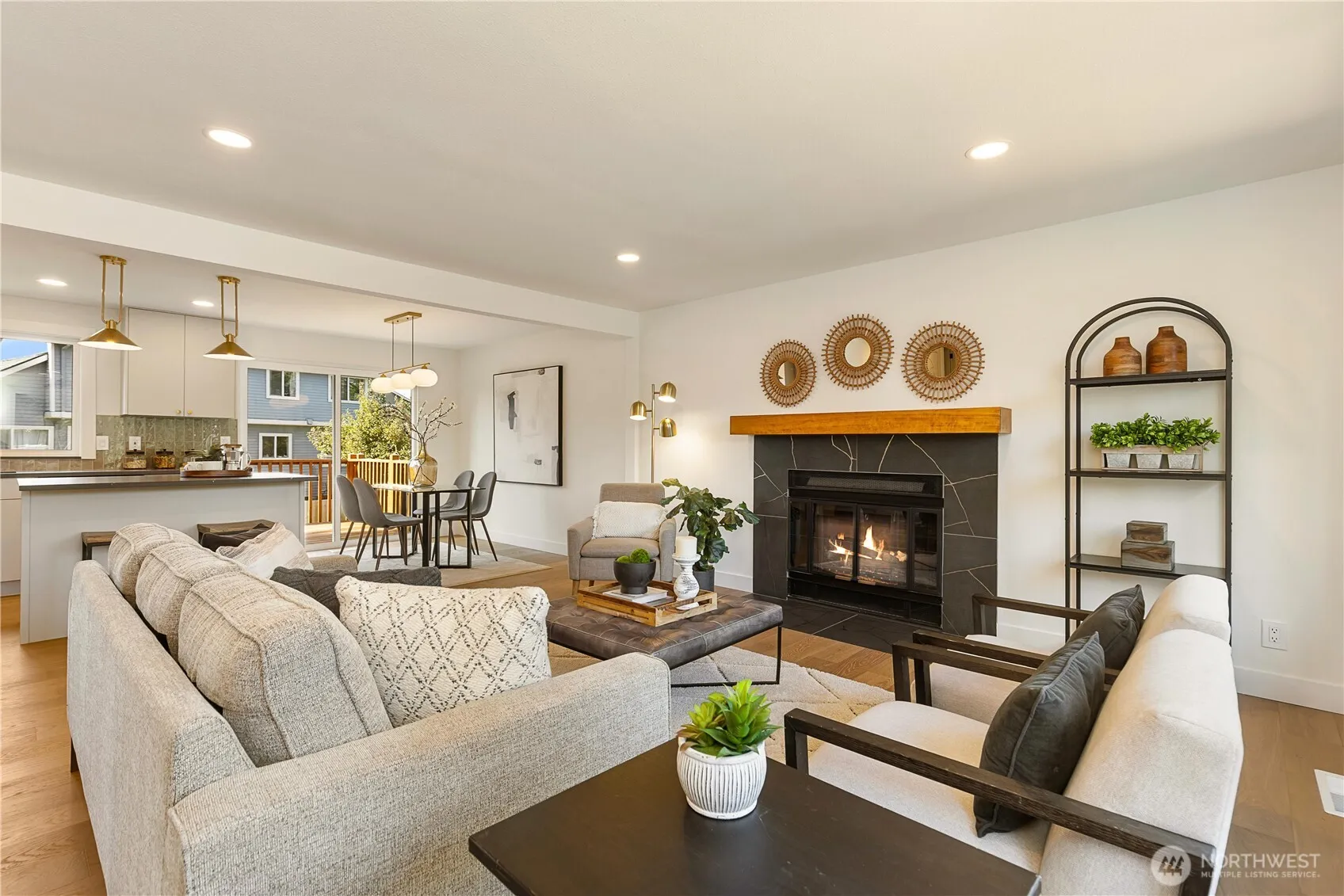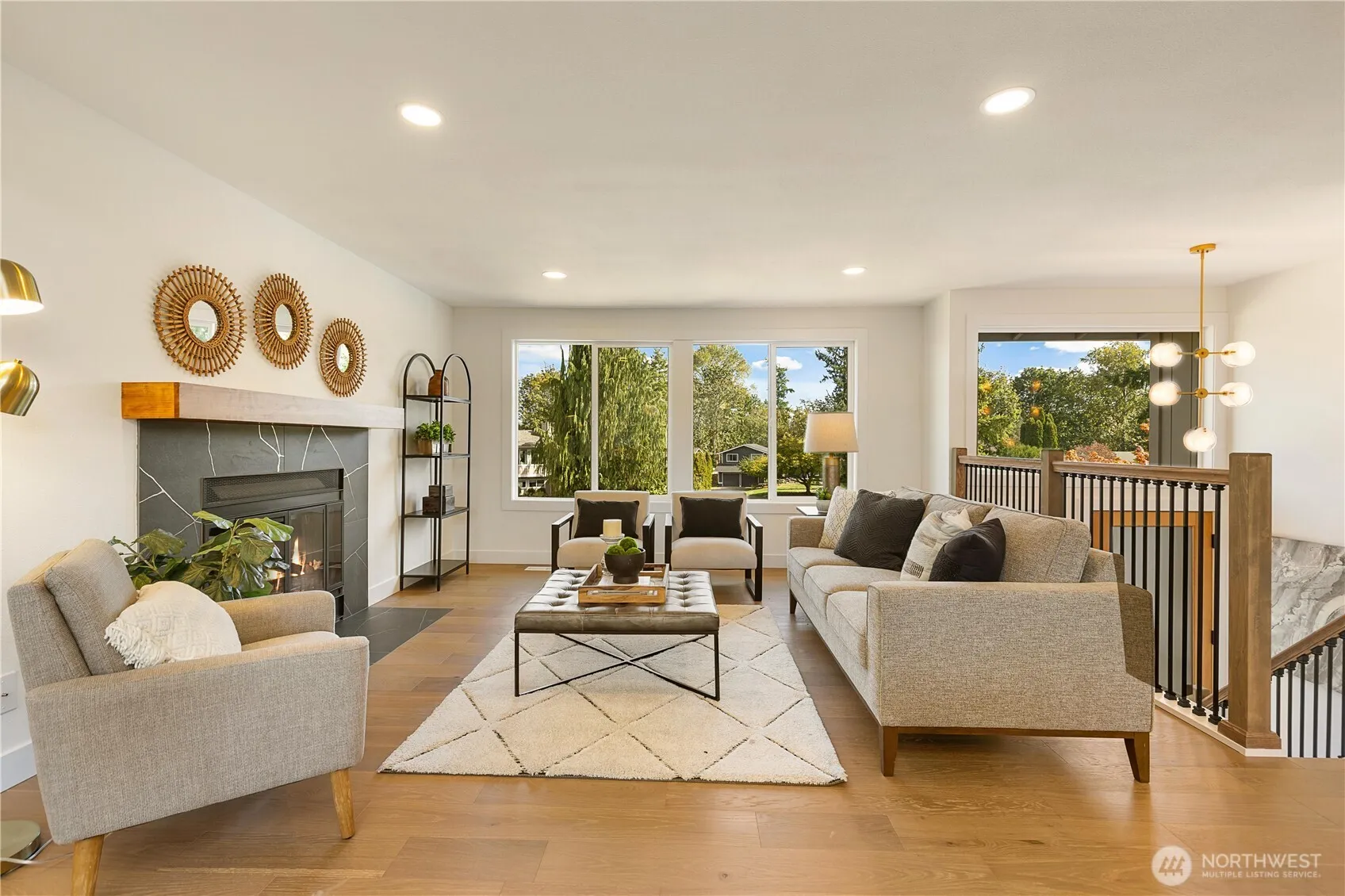 Perfectly positioned in the heart of Finn Hill, this striking home sits on a quiet cul-de-sac lined with wide streets, nearby parks and top-rated schools. New hardwoods and railings lead to the main floor’s chic new kitchen with sleek cabinetry and sophisticated finishes. The dining area with deck access adjoins the light-filled living room – perfect for entertaining. The primary retreat with walk-in closet and ¾ spa-like ensuite is beautifully finished. With two additional bedrooms and gorgeous full bath on one level create the ideal layout. The lower level offers incredible flexibility with a fourth bedroom or office adjoining the bonus room with yard access. A stunning full bath updated with all-new finishes and fixtures completes the space. Don’t miss the newly finished, heated garage/flex space—an incredible bonus area ready to adapt to your lifestyle, whether it’s a home gym, game room, creative studio or the ultimate hangout. Updated and permitted throughout for piece of mind and long term value! The expansive, freshly landscaped yard with cozy firepit with string lights invites you to garden, gather, or simply relax. Minutes to parks, beaches, shops, commuter routes and more! Buyer incentives available!!