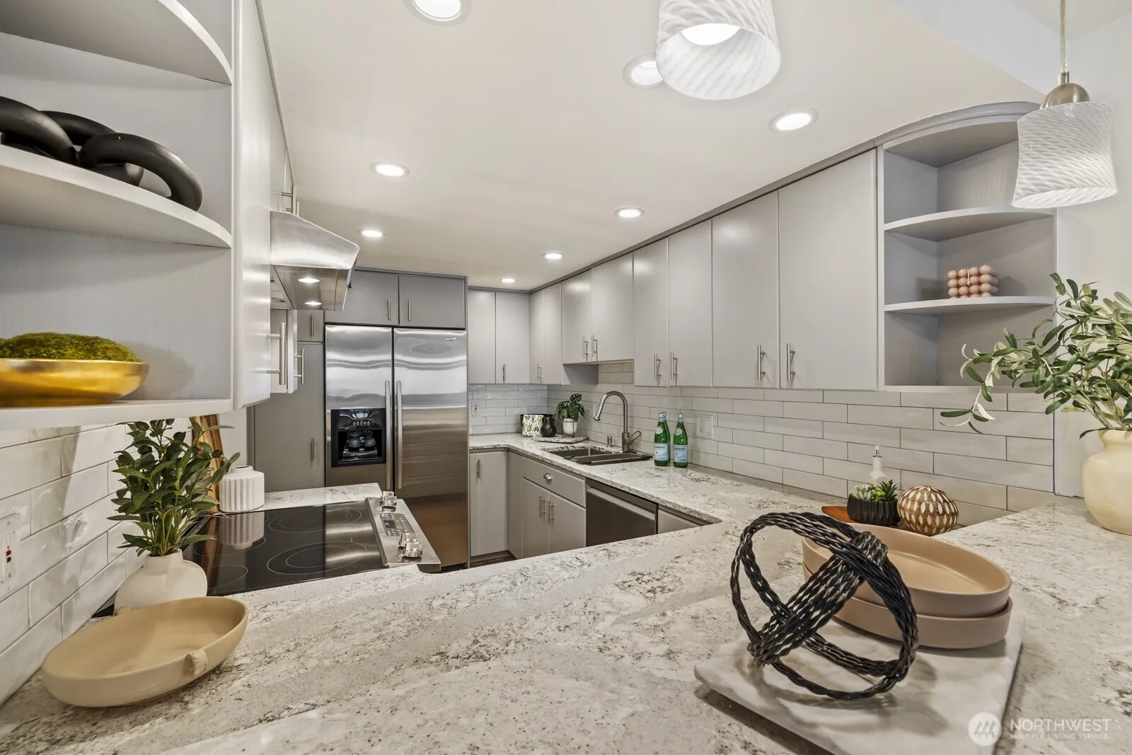 Welcome Home! Just steps away from popular Juanita Beach, this lovingly maintained and stylishly updated 2BR/1.75BA Condo provides the Convenient Lifestyle you’ve been looking for! Enjoy your beautifully updated Kitchen with Gleaming Quartz Countertops, Custom Backsplash, Pantry with Pull-Out Drawers, Efficient Lazy Susan, SS Appliances, Island Seating with Pendant Lighting, and Easy-Care LVP flooring. The Extra-Large Primary BR Suite is flooded with Natural Light, features THREE Closets, an En-Suite Bath, and has direct access to the Serene Balcony overlooking Flowering Fruit Trees & the Babbling Creek below. In the evening, cozy up to the Wood-Burning Fireplace with Custom Mantle and flanked by Gorgeous Custom Built-In Cabinets with Lighted Shelving. Featuring New Interior Paint (2026), New Stove/Range (2026), New Hot Water Tank (2026), & Newer Dishwasher (2022). Full Size Washer & Dryer remain with the home. You’ll find Plenty of Storage in the dedicated Laundry/Utility Room in addition to the Storage Closet on the Balcony. One Covered Assigned Parking Space & several Unreserved Spots – take the elevator or stairs to your Unit. With Neighborhood Shops, Restaurants, & Recreation within Walking Distance of this Quiet & Secure building, your Evenings and Weekends will be effortless! Close to I-405 & the Tech corridor. Well-Run HOA. No Rental Cap. Tour today!