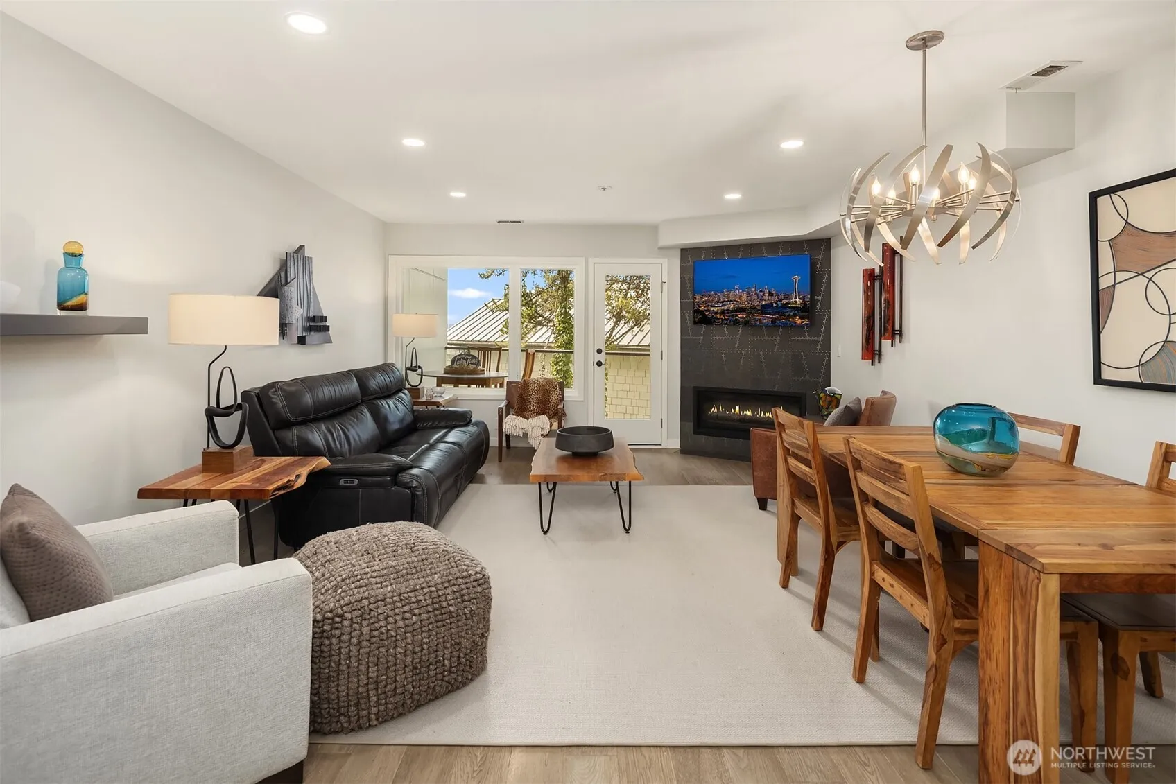 LAKE VIEW WATERFRONT RETREAT ~ Scenically poised on the shores of Juanita Bay in Kirkland’s newly updated Rose Pointe Condos, this contemporary oasis dazzles with stunning new high-end modern finishes, open concept bi-level layout & tranquil lakeside views! Turnkey move-in ready luxury featuring over $150k+ in quality upgrades – Pella windows, lavish tiled baths, wide-plank hardwoods, upscale millwork, artisan hardware, custom lighting, designer paint, solid core doors & so much more. Showcase kitchen with Calacatta quartz counters, bold full-height tile backsplash, gas cooktop & premium appliances opens to spacious living & dining room with floor-to-ceiling linear gas fireplace & wall-to-wall windows overlooking covered view balcony. Primary suite features breathtaking spa-inspired 5-piece bath with heated tile floors & romantic lanai. Sprawling private beachfront with outdoor lounge & water sport storage. A quaint 15-unit gated building with secure parking garage, elevator & bonus storage room. Dream location with 22-acre Juanita Beach Waterfront Park at your doorstep & vibrant downtown Kirkland just moments away!