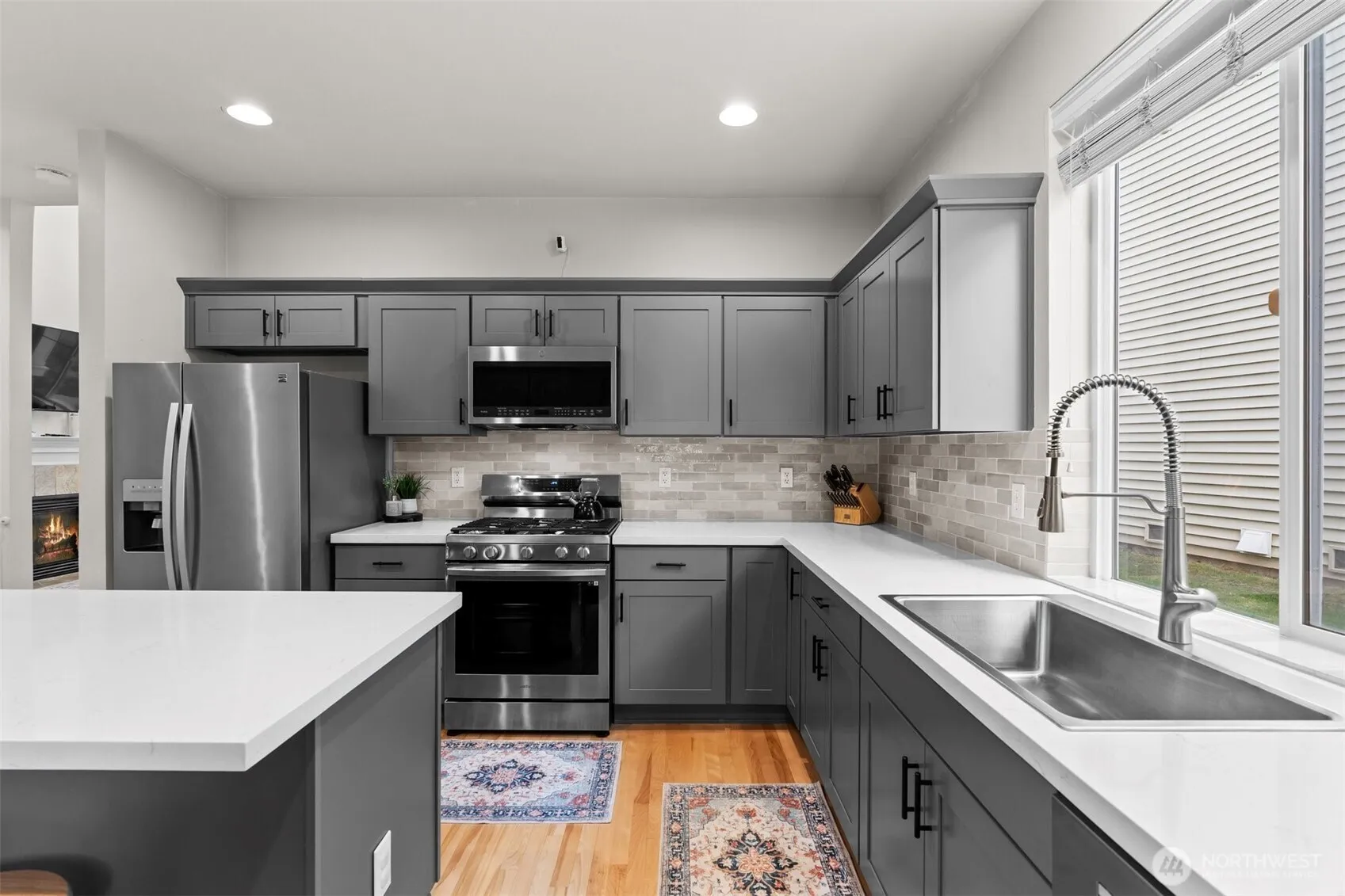 Beautifully maintained Crosswater home near the community playground. A light-filled vaulted entry and hardwood floors throughout the main level lead to a stunning remodeled kitchen that opens to comfortable living spaces. The living and dining area features a cozy gas fireplace. Upstairs offers 3 bedrooms including a spacious primary suite with a 5-piece bath, walk-in closet, and a walk-in laundry room. Enjoy a covered patio and fully fenced backyard with great usable space. Easy access to Hwy 9 and I-5.
