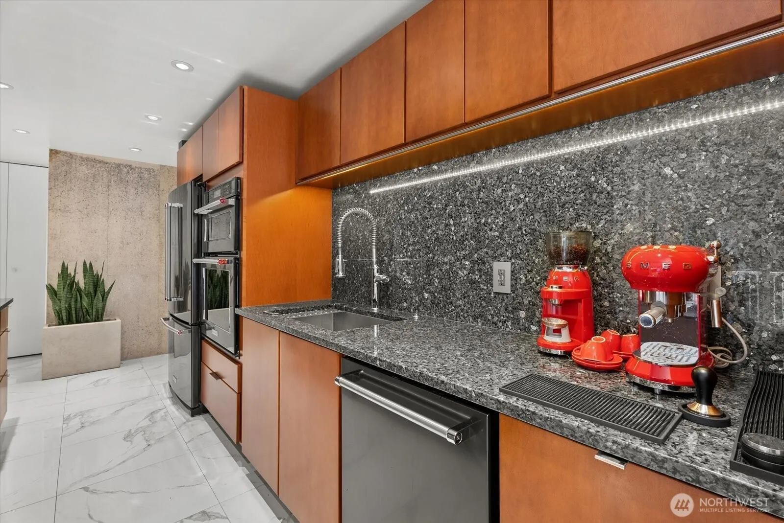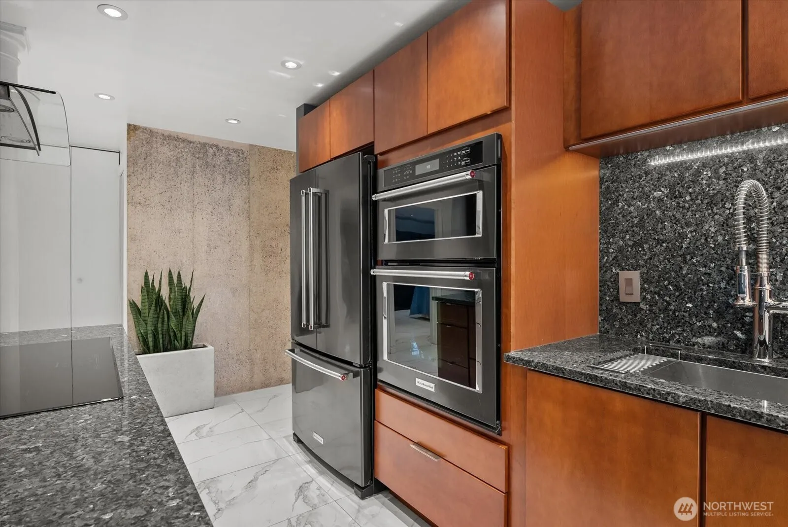 Stunning Remodeled Condo in Highly Sought-After Juanita, Kirkland Experience modern living in this beautifully remodeled condo situated in the desirable Kirkland Juanita neighborhood. Enjoy unparalleled access to the vibrant amenities this area offers, with Juanita Beach, scenic parks, and picturesque walking trails just moments from your doorstep. Commuters will appreciate the convenient proximity to I-405, making travel throughout the region a breeze. Step inside to discover a designer kitchen featuring premium KitchenAid appliances in sleek black stainless steel, an induction cooktop, elegant roman columns, and striking granite countertops. The kitchen is enhanced with USB ports for modern convenience and durable ceramic tile flooring throughout the unit. Both bathrooms have been tastefully remodeled, and recessed lighting illuminates every corner, creating a warm and inviting atmosphere. This move-in-ready home combines luxury, comfort, and convenience—schedule your private showing today and see why this condo is truly a rare find in Juanita!