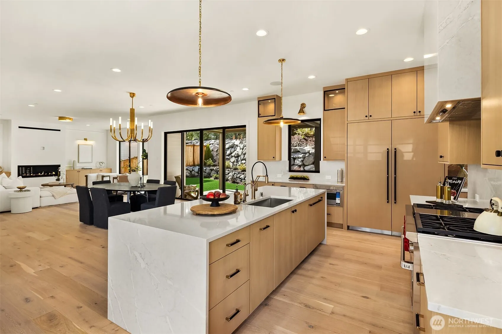 Welcome to The Bridges West, where refined luxury meets serene, effortless living. The Evergreen Residence is a stunning expression of modern design, elevated by bespoke finishes and impeccable craftsmanship throughout. At the heart of the home, a dream chef’s kitchen features premium appliances, custom cabinetry, and an expansive island—perfectly designed for both everyday living and sophisticated entertaining. The inviting great room with fireplace and elegant dining area flow seamlessly to a spacious, heated covered deck and a beautifully landscaped private backyard, creating an ideal setting for year-round indoor-outdoor living. Upstairs, the primary suite offers a tranquil retreat, complete with a generous walk-in closet, spa-inspired bath, and a private deck. Three additional spacious bedrooms provide comfort and flexibility for guests. The bright, full daylight lower level is designed for versatility, featuring a generous bonus room, stylish wet bar, and a private guest suite with a full bath—ideal for extended stays or multi-generational living.Thoughtfully curated outdoor spaces and timeless design elements throughout make this home a rare offering—your own secluded urban sanctuary.