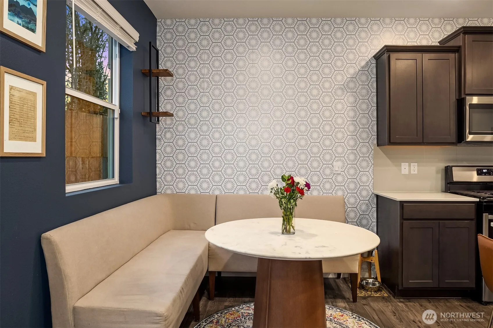 Welcome to The Timbers. Built by DR Horton in 2021, this Cambridge model offers a spacious open-concept layout with LVP flooring throughout the main floor, an expansive dining area, and a large kitchen featuring an oversized island with quartz countertops and stainless steel appliances with a gas range. Upstairs you’ll find four bedrooms and a generous bonus space perfect for entertaining, working from home, or relaxing. The primary suite overlooks a peaceful greenbelt and includes a spacious five-piece bath. Enjoy the fully fenced backyard with professionally installed turf and a concrete patio offering low-maintenance outdoor living and added privacy. Additional features include air conditioning and smart home technology. Located just a short walk to Lake Stevens High School, community playgrounds, and only five minutes from both Frontier Village and Downtown Lake Stevens, with easy access to Highway 92 for commuting.
