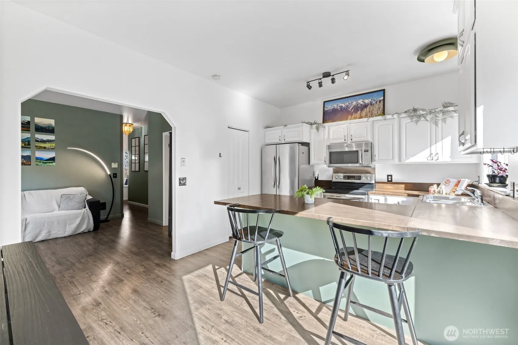 Move-in ready updated Craftsman in Port Angeles just minutes from Olympic National Park Visitor Center, Peninsula College, downtown waterfront, shopping, dining & the local U.S. Coast Guard presence. From the moment you arrive, the home feels approachable, comfortable & ready for your next chapter. Inside, natural light fills the space with an easy flow between living areas—perfect for hosting, relaxing or everyday living. The kitchen sits at the heart of the home with oversized bar seating for connection & conversation, plus updated stainless appliances including double ovens. Fresh paint & new plank flooring throughout. Functional 3 bdrm, 2.5 bath layout. The primary suite offers a walk-in closet, skylight & private ensuite. Outside, enjoy a fenced yard with space for furry friends, little ones, patio lights or a fire pit. Affordable living in a convenient location—ideal for buyers or investors seeking predictable overhead.
