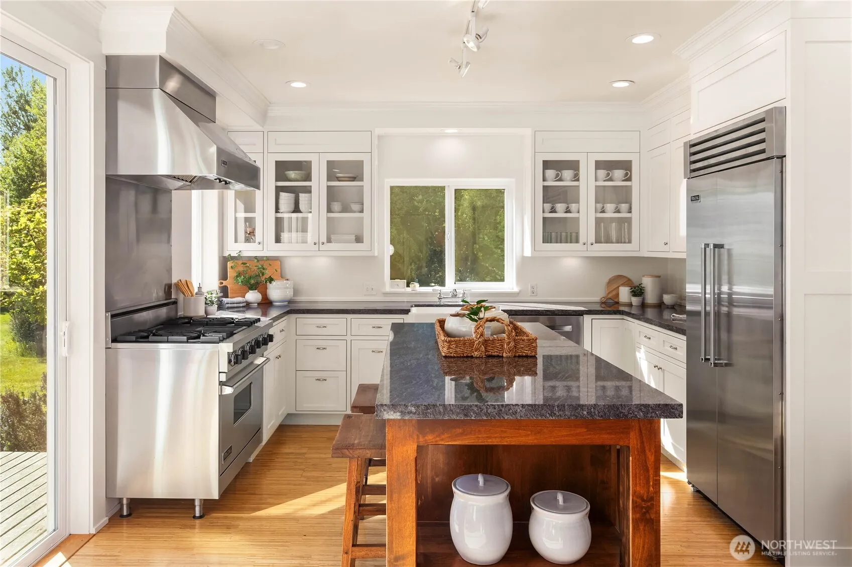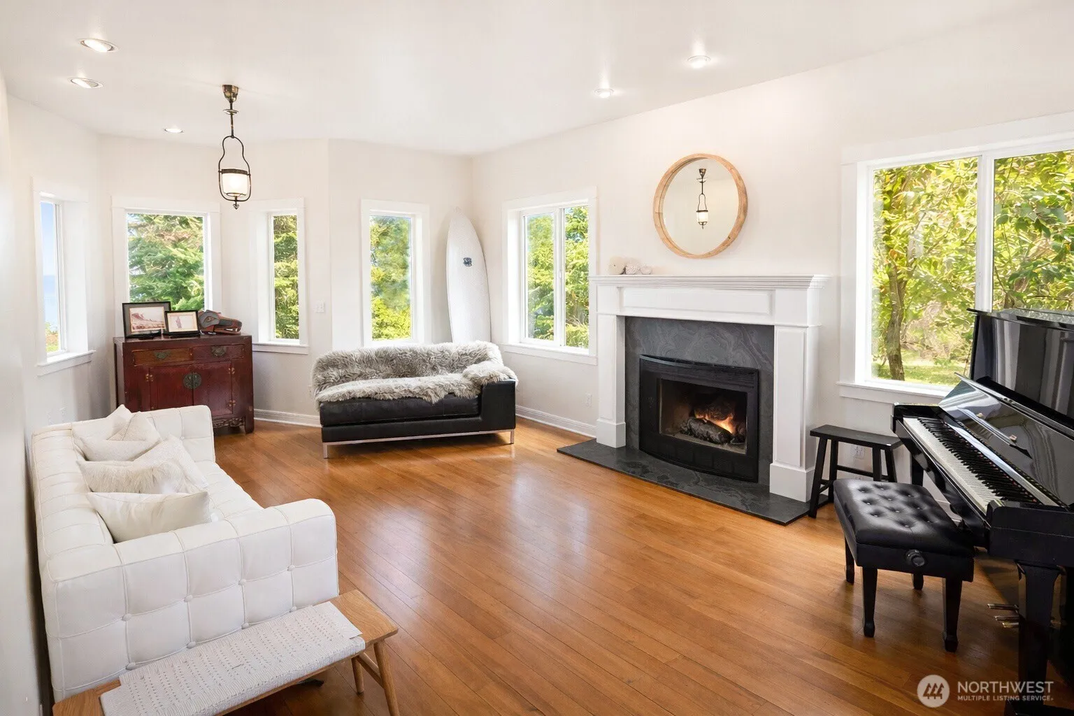 From the water’s edge to the summit above, this rare 10-acre coastal blufftop estate is a true climate haven in the heart of the Olympic rain shadow between Sequim and Port Angeles, where blue skies and sun-drenched days are the norm. Set across two parcels, including a second 5-acre lot with future potential (buyer to verify), the property captures sweeping Olympic Mountain and Strait of Juan de Fuca views from nearly every room. Follow your private trail to the beach below, rinse off in the outdoor surf shower, or unwind beneath the cedar pergola in the covered hot tub overlooking the water. Designed for both retreat and adventure, the grounds unfold in a park-like setting with pond, evergreens, and a covered recreational pavilion currently a half-pipe, an unexpected space for play, creativity, or reimagining. Inside, light-filled living spaces frame the landscape, complemented by a chef’s kitchen with Viking appliances, dual refrigerators, and pantry, along with three en-suite bedrooms and a private sauna. A main-level office nook with water views invites inspiration, while a spacious bonus room offers flexibility for a gym, studio, or media lounge. Each suite includes a lofted area above for additional storage and utility. Multiple view patios, oriented to both mountain and Strait, create seamless indoor-outdoor living. A setting that feels both expansive and deeply personal, crafted for those who seek beauty, privacy, and a life well-lived at the edge of land and sea.