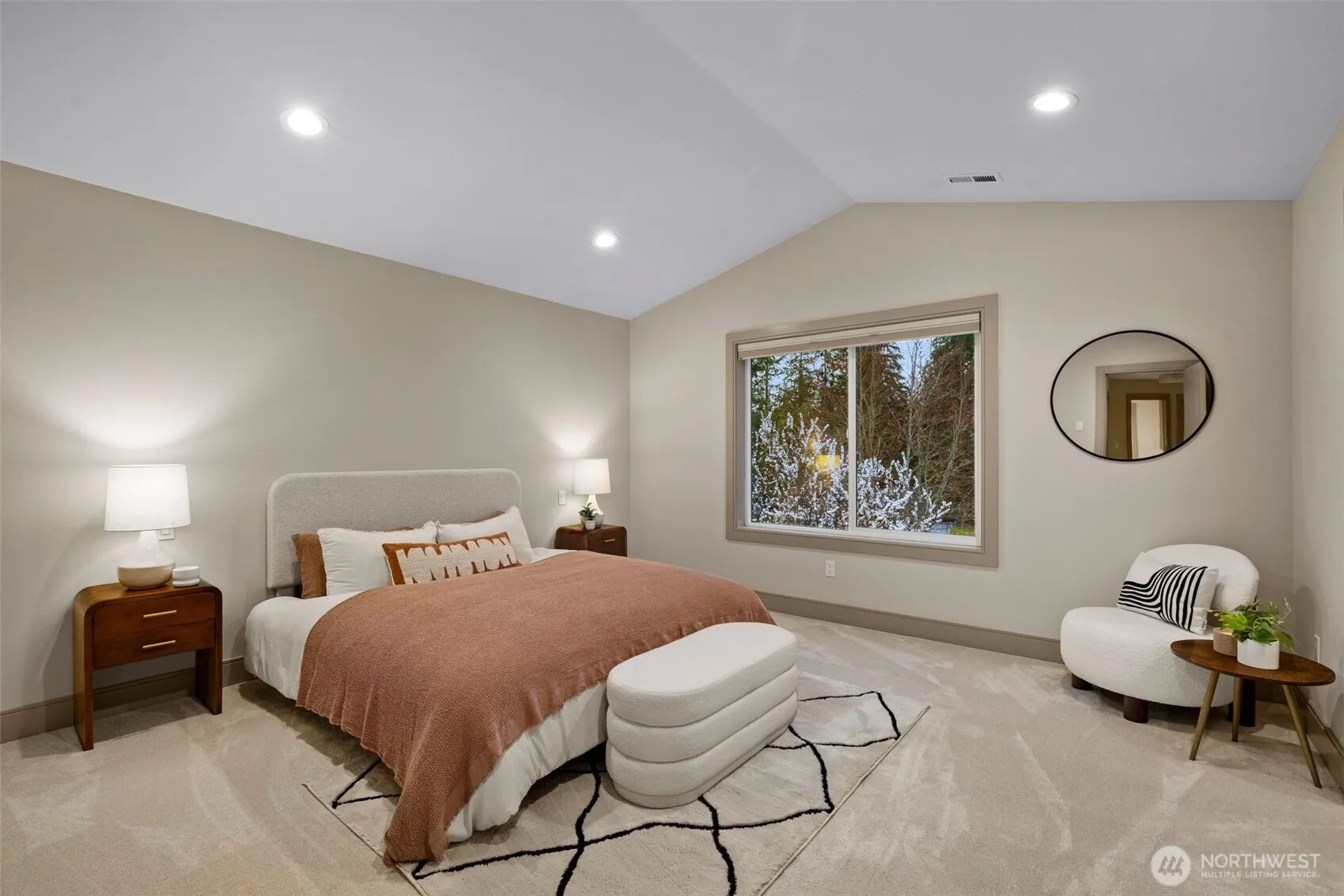 Life unfolds beautifully in this contemporary 5-bedroom Juanita home where light, modern design, and calming treetop views seamlessly come together. Sunlight pours through the open-concept main level where the kitchen, dining, and living space with cozy fireplace connect effortlessly. The chef’s kitchen complete with oversized island, quartz countertops, and KitchenAid appliances, becomes the hub for hosting friends or casual breakfasts. Sliding glass doors extend to an elevated deck framed by tranquil views, an inviting place to sip morning coffee or unwind under open skies. Upstairs, the vaulted primary suite offers a calming escape with spa-inspired bath featuring dual vanities, soaking tub and generous walk-in closet. A spacious lower level adds incredible flexibility with direct access to the private patio and fully fenced backyard. With fresh interior paint, brand-new carpeting throughout, and easy access to Kirkland amenities, walking trails & coveted Lake Washington Schools, this move-in ready retreat blends comfort, style, and everyday livability.