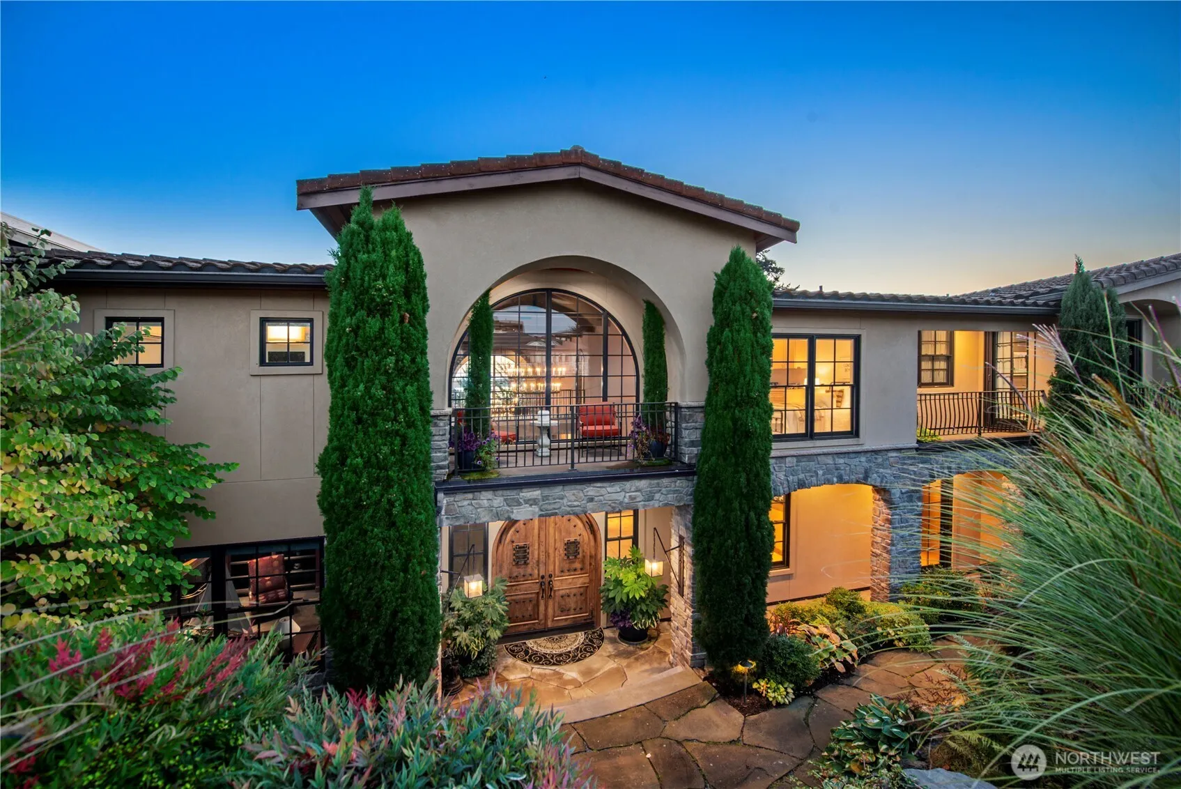 This exquisite view estate embodies luxury living with exceptional design, premium materials, and thoughtful craftsmanship. Glorious views of Lake Washington, city and mountains. The main level welcomes you to formal living and dining, stunning kitchen with large family room, handsome office and en suite bedroom. The upper level hosts 2 flex space rooms plus 4 en suite bedrooms all with individual access to decks including the significant primary suite. The lower level is incredible entertaining space with theatre room, rec room, family room, wine room, bar and en suite bedroom. Elevator services all 3 floors. Parking for 6 cars between 2 garages. Beautifully designed landscape with water features and lighting creating lovely ambiance. All furniture can be included in home purchase.