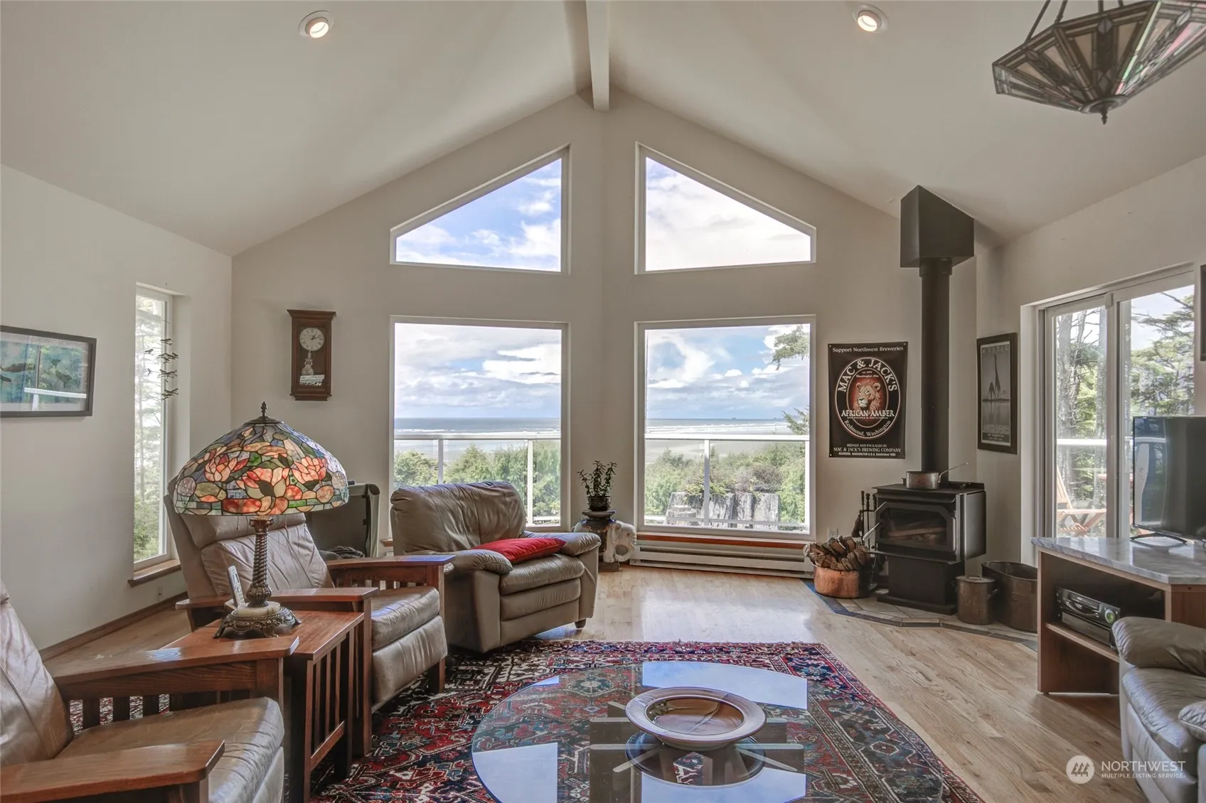 Gorgeous custom coastal home built in 2002. Fantastic ocean views from Joe Crk to Pt. Grenville. Wonderful features include vaulted ceilings, granite, wood floors, wood stove, & natural light! Private & serene PNW setting in gated Haskin Park. The open-concept living space is full of glass & perfect for entertaining. The primary bdrm opens up to the large wrap-around view deck to take in the sun & trees. You’ll love the spa-like primary bath & auxiliary primary powder bath & walk-in closet. 2nd bdrm can be used as an office. Downstairs is another living space & bdrm that could be a lock-off. Neighborhood is nightly rental-friendly. Beautiful beach nearby w/easy access & walk to Seabrook. Oversized garage,hot tub,greenhouse, & much to sea!