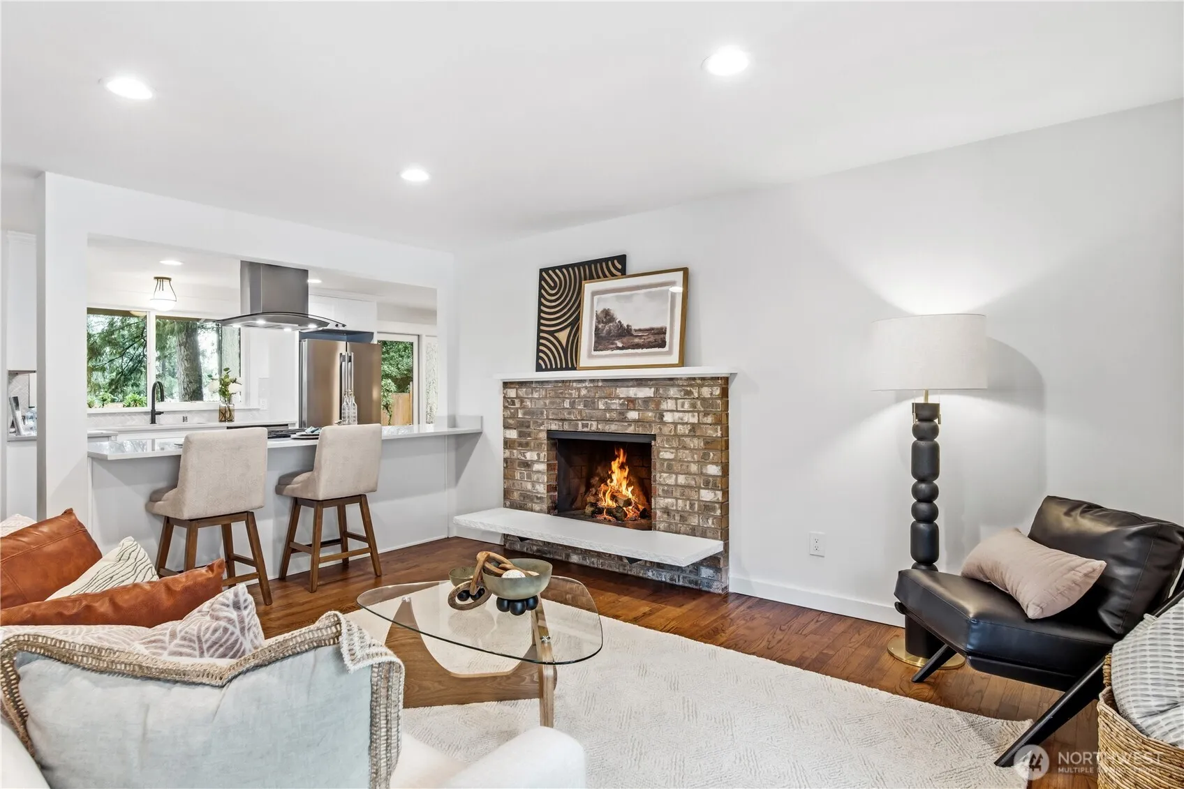Fully Renovated 2026 Rambler in Sought-After Kingsgate – Every Detail Brand-New & Steps to Community Pool. Experience effortless luxury in this exceptional single-level rambler in highly desirable Kingsgate. Completely renovated in 2026 featuring premium finishes throughout: a stunning chef’s kitchen with quartz counters, custom cabinetry, high-end stainless appliances, tile finishes, to beautifully refinished hardwood floors tying bright, open-concept living spaces flooded with natural light. The living room is anchored by a cozy fireplace and flows seamlessly through the kitchen and family room. The primary suite connects directly to a luxurious primary bath featuring a walk-in tile shower and quartz vanity. A full-size dedicated laundry, utility, and mud room flows to the attached 2-car garage with brand-new doors and finished, insulated interior and painted floors. Exterior upgrades: new 30-year composite roof, windows, and fresh paint, along with a brand-new driveway/walkway. The large patio off the kitchen—perfect for summer BBQs and entertaining and has gated access directly to the park and pool. Ideally situated, enjoy walking to the top-rated neighborhood elementary (Lake Washington SD), while being moments from downtown Kirkland’s vibrant waterfront, parks, trails, Totem Lake Village shopping, dining, Evergreen Health, and Eastside commutes. This a rare and uniquely renovated rambler. A must see!