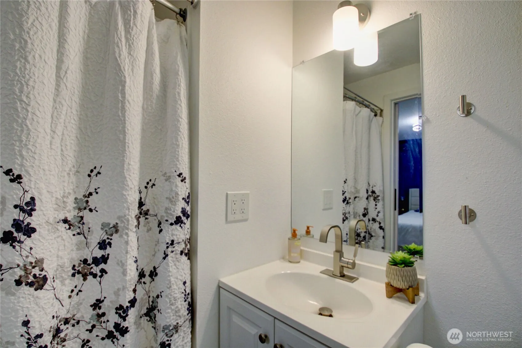 1,848 sq ft home on a level ¼-acre lot located on a dead-end road. Main level includes great room with vaulted ceilings, kitchen with butcher block counters, bar seating and stainless steel appliances. Primary suite with ¾ bath, plus two additional bedrooms and full bath. Separate living space (ADU) with interior and exterior entry, fenced yard, kitchenette and living area, ¾ bath, and two bedrooms upstairs. 550 sq ft two-car garage with washer/dryer and shelving. Driveway parking including RV space with power hookup. Fully fenced backyard with patio and storage shed. Updates include new flooring, paint, and windows. Located minutes to local amenities.