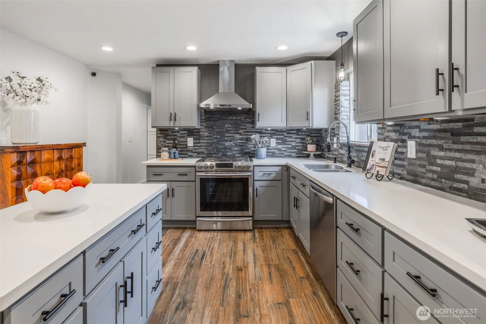 Located in the heart of Black Diamond, this updated charmer has more than you can imagine. Whether you are looking for a multigenerational home, entertaining with a second kitchen, separate entrance rental potential, or simply the perfect home. This 3-level home blends classic character with modern updates. Main floor features a spacious living room with wood stove, dining area, and stainless appliance kitchen with center island & tons of storage. The primary suite includes remodeled spa-like bathroom with soaking tub & tile surround. MIL-ready lower level offers private entrance, full kitchen, family room, ¾ bath, laundry & 2 large bedrooms—ideal for multi-generation living or rental potential. Upper level has remodeled ¾ bath plus a flexible space for bedroom, office, hobbies, or bonus. Wrap-around covered deck with peek-a-boo Mt. Rainier & foothill views. Enjoy the sunny garden space, fire pit, outdoor living with hot tub, detached insulated garage and attached workshop/shed/storage. This home is in a great location with NO HOA which means RV parking, plus easy access to trails. You’ll be WOW’d with all it has to offer.